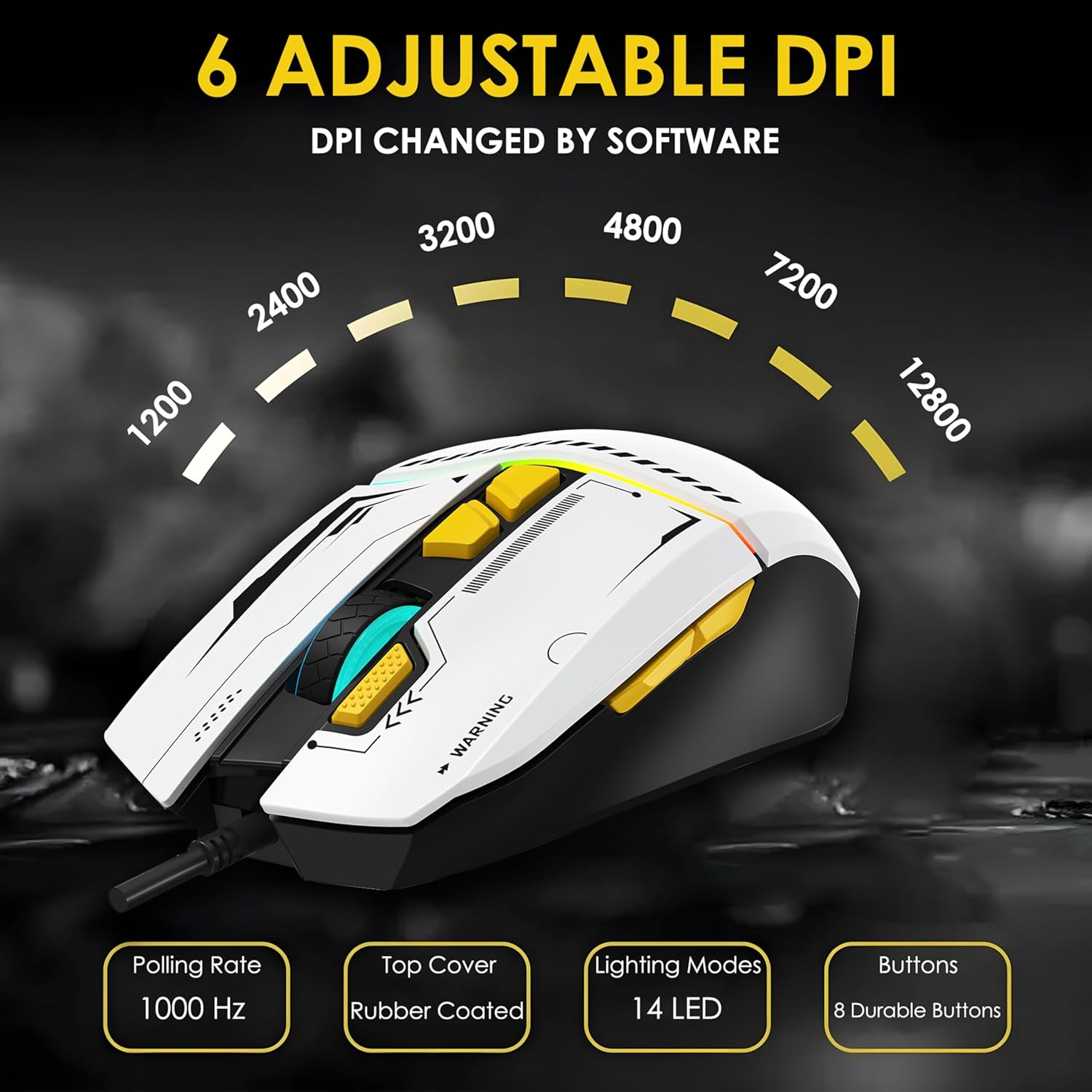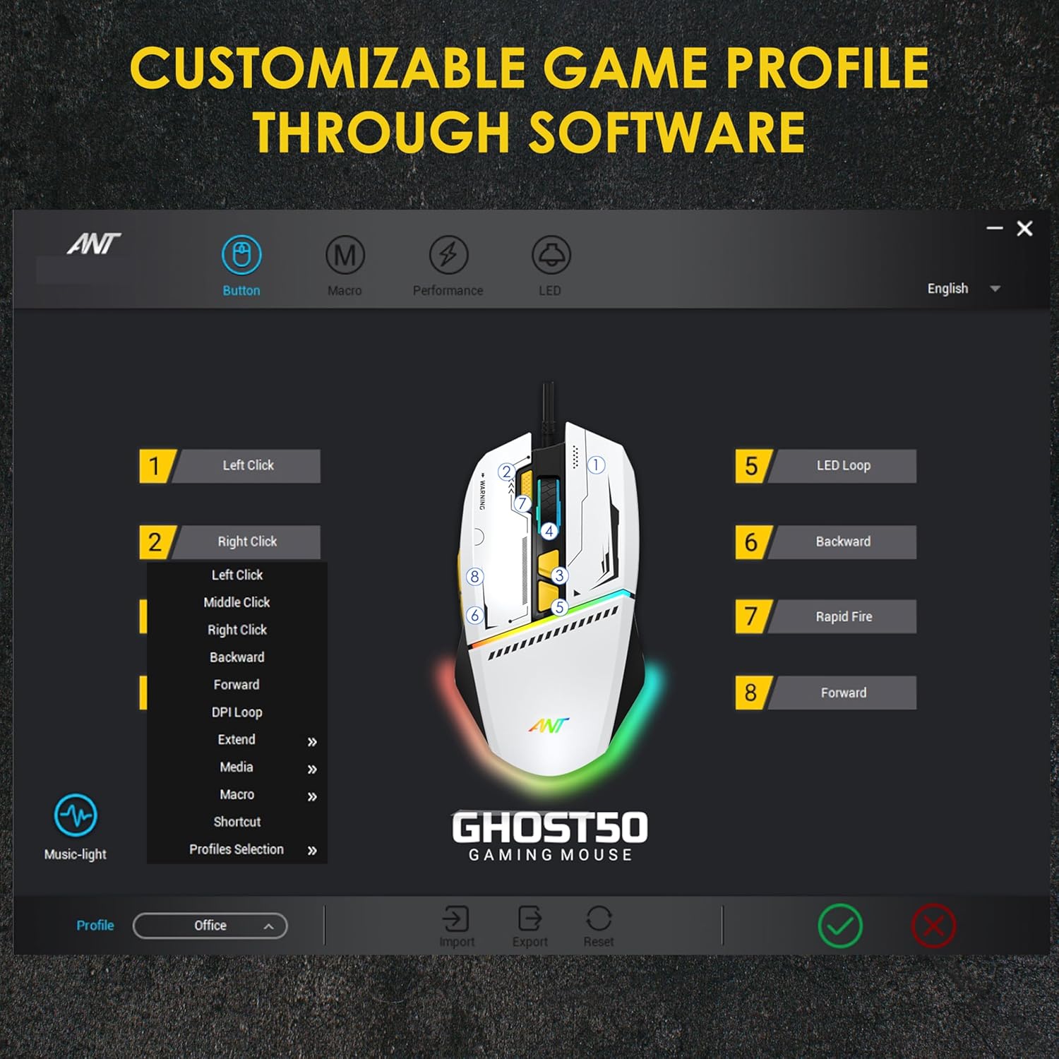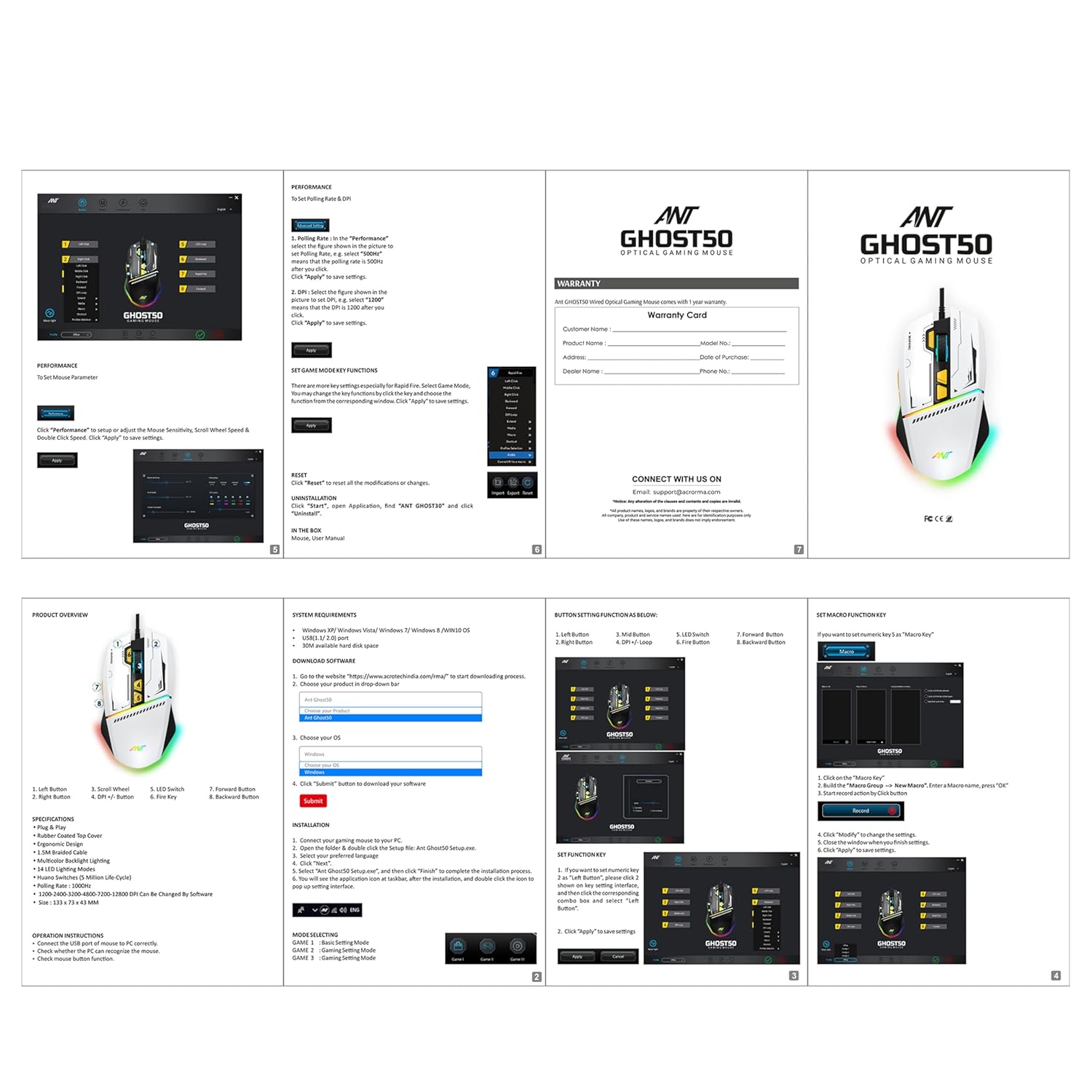 Ant Ghost 50 RGB Gaming Mouse with12800 DPI Wired Optical Gamer Mouse with 8 Programmable Buttons & Software Support DIY Key Binding Fast Fire Button 1KHz Polling Rate – White