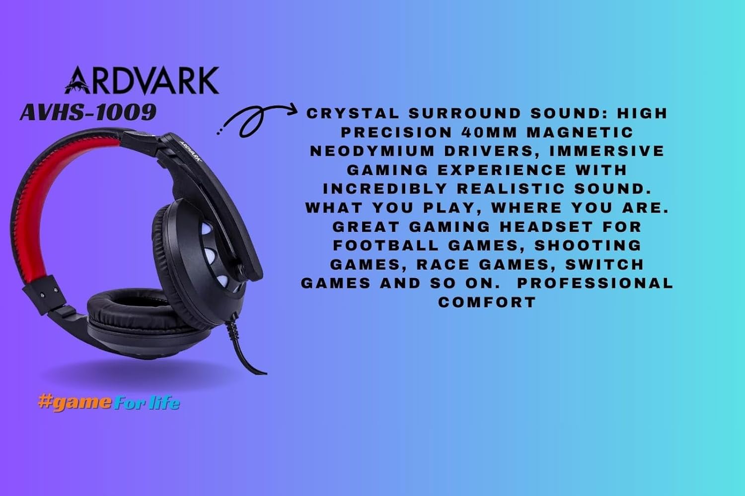 ARDVARK AVHS1009 Gaming Headset for PS5, PS4, Xbox One, Switch, PC with Noise Cancelling Mic, Deep Bass Stereo Sound – Black