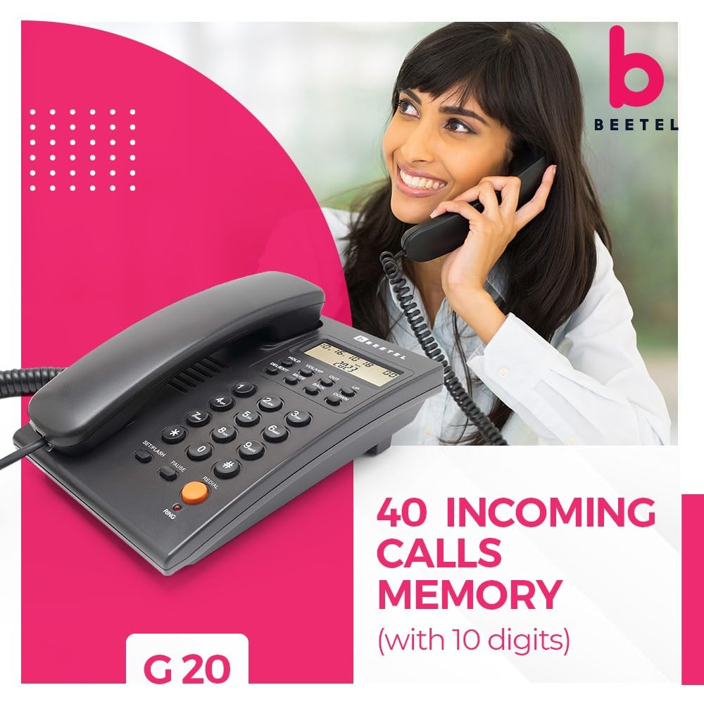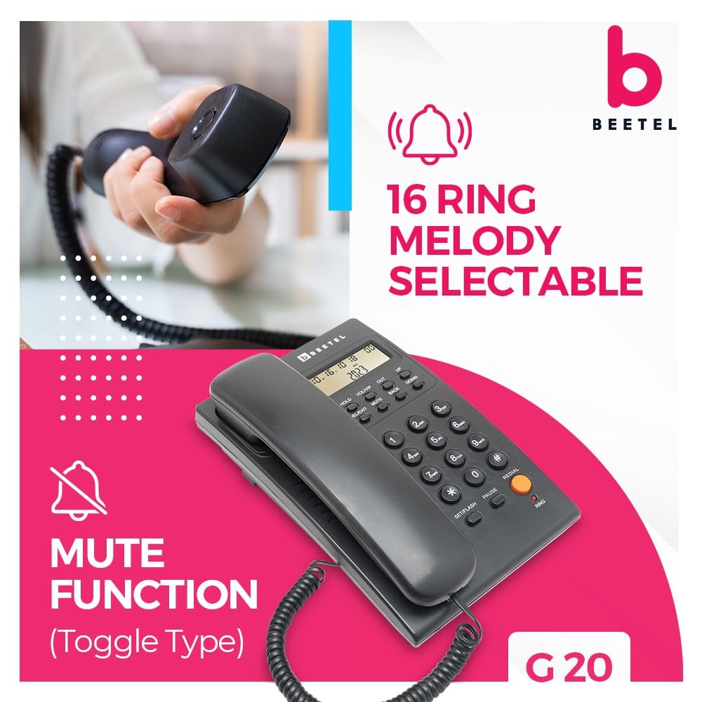 Beetel G20,TEC Certified,Caller ID Phone LCD Display, Ringer LED, DTMF/FSK Compatible, Adjustable Handset/Ringer Volume,Music on Hold,Desk/Wall Mountable,3 Level LCD Contrast,Alarm(Black)
