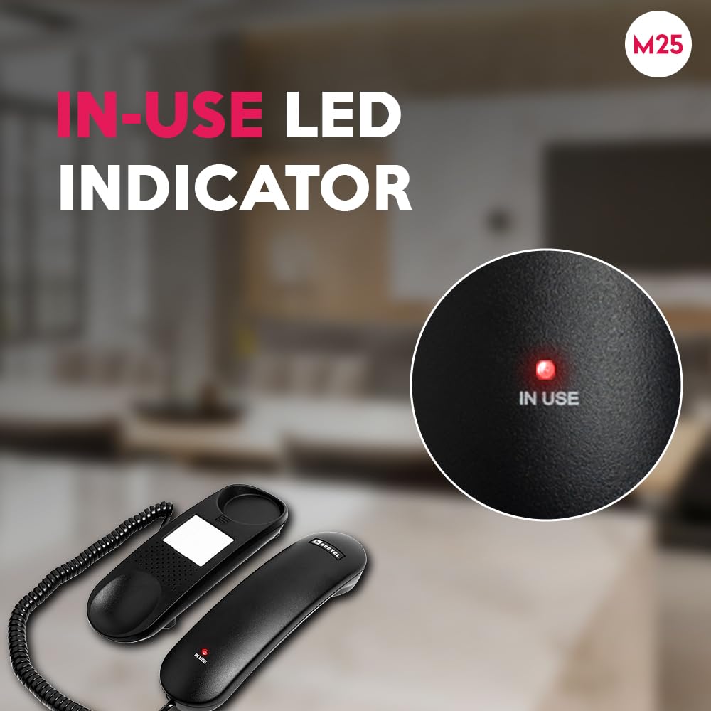 Beetel M25 Ultra Compact Caller ID Slim Line Corded Landline Phone,Numeric Display, Desk/Wall Mounted,12 Digit LCD,FSK/DTMF Compatible,Ringer Volume Control,LED Indication (Black)