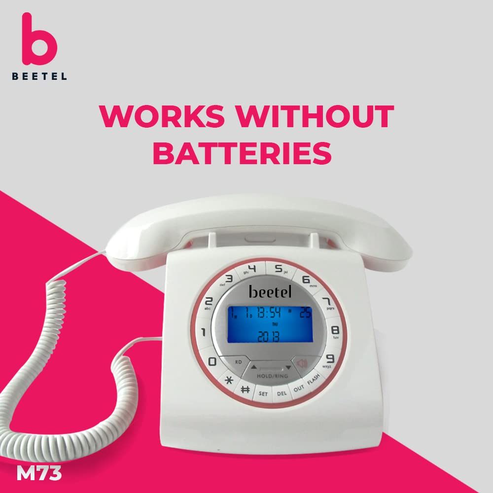 Beetel M73 Caller ID Corded Landline Phone with 16 Digit LCD Display, Retro Design, Alphanumeric Keypad, 2-Way Speaker Phone, Adjustable Ringing (White & Red)