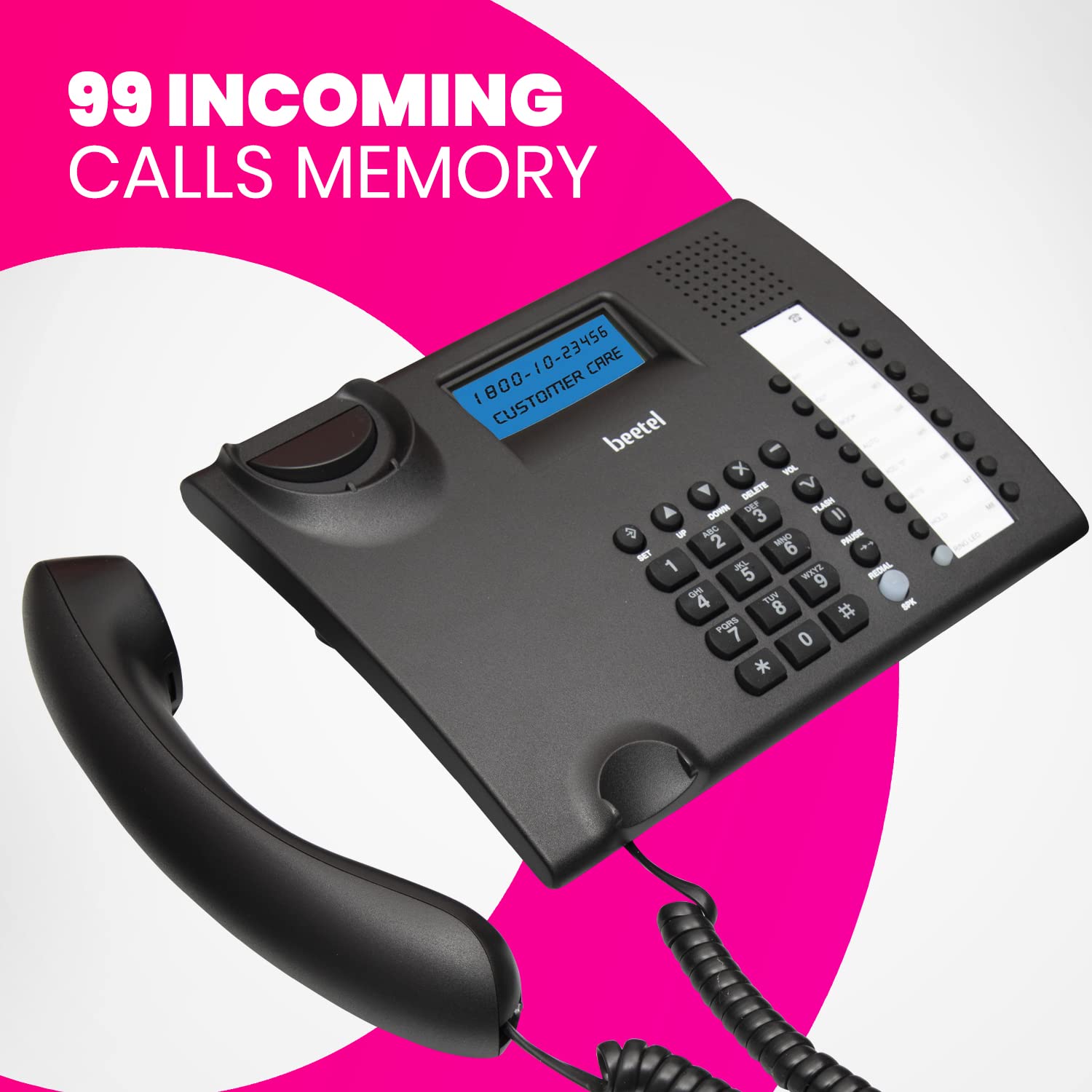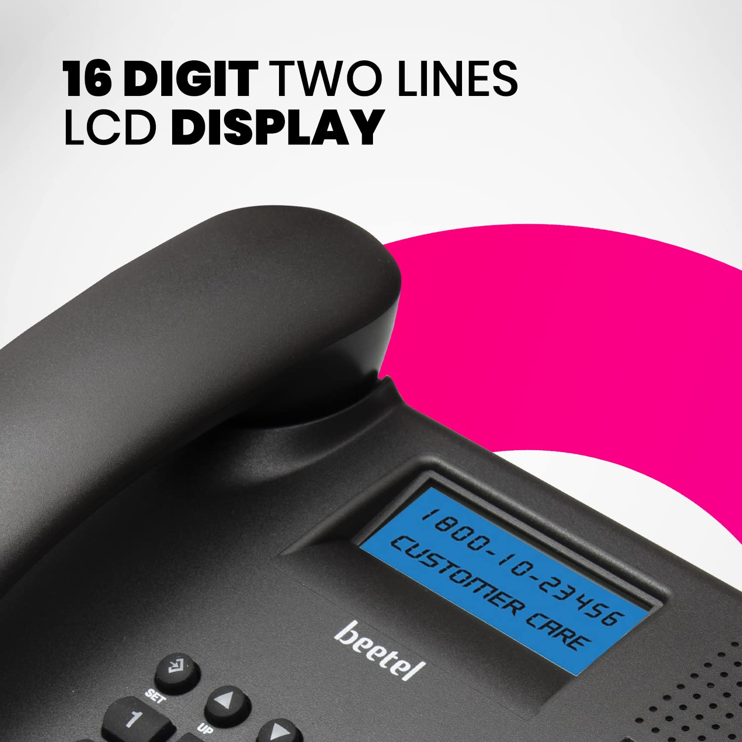 Beetel M90N Caller Id Corded Landline Phone with 16 Digit LCD Display,Fsk/Dtmf Compatable Caller N Id,8 Direct One Touch & 10 Two Touch Memory,Volume Control for Speaker Phone,Music On Hold (Black)