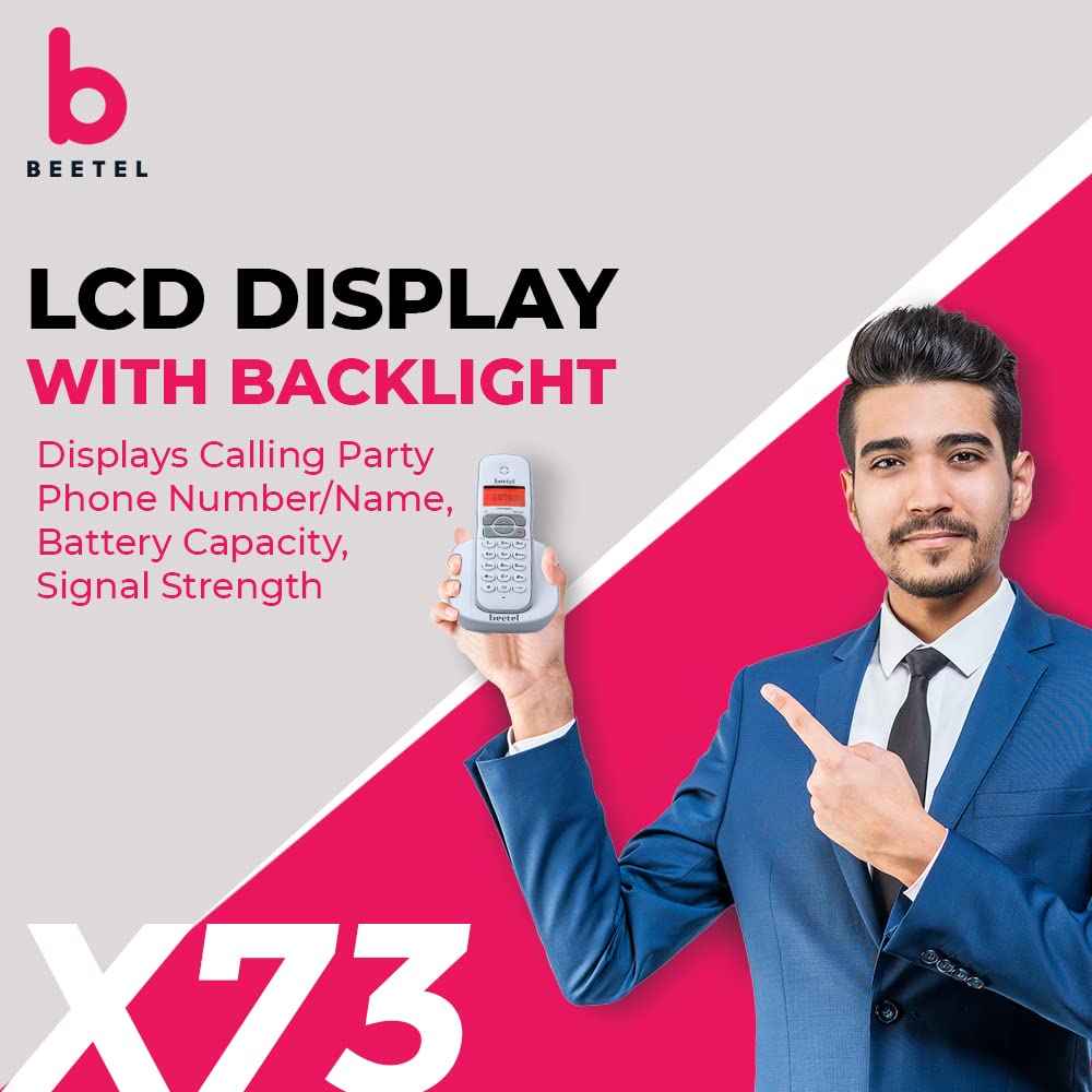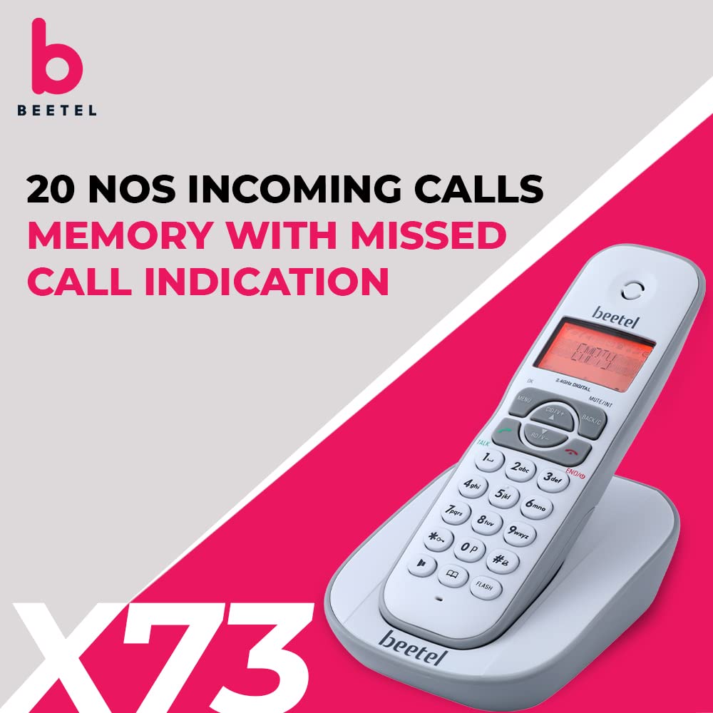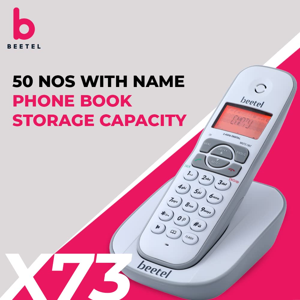 Beetel X73N 2.4Ghz Cordless Landline Phone with Caller ID Display, 2-Way Speaker Phone with Volume Controls, Auto Answer, Alarm Function, Stylish Design (Grey/White)(X73N)