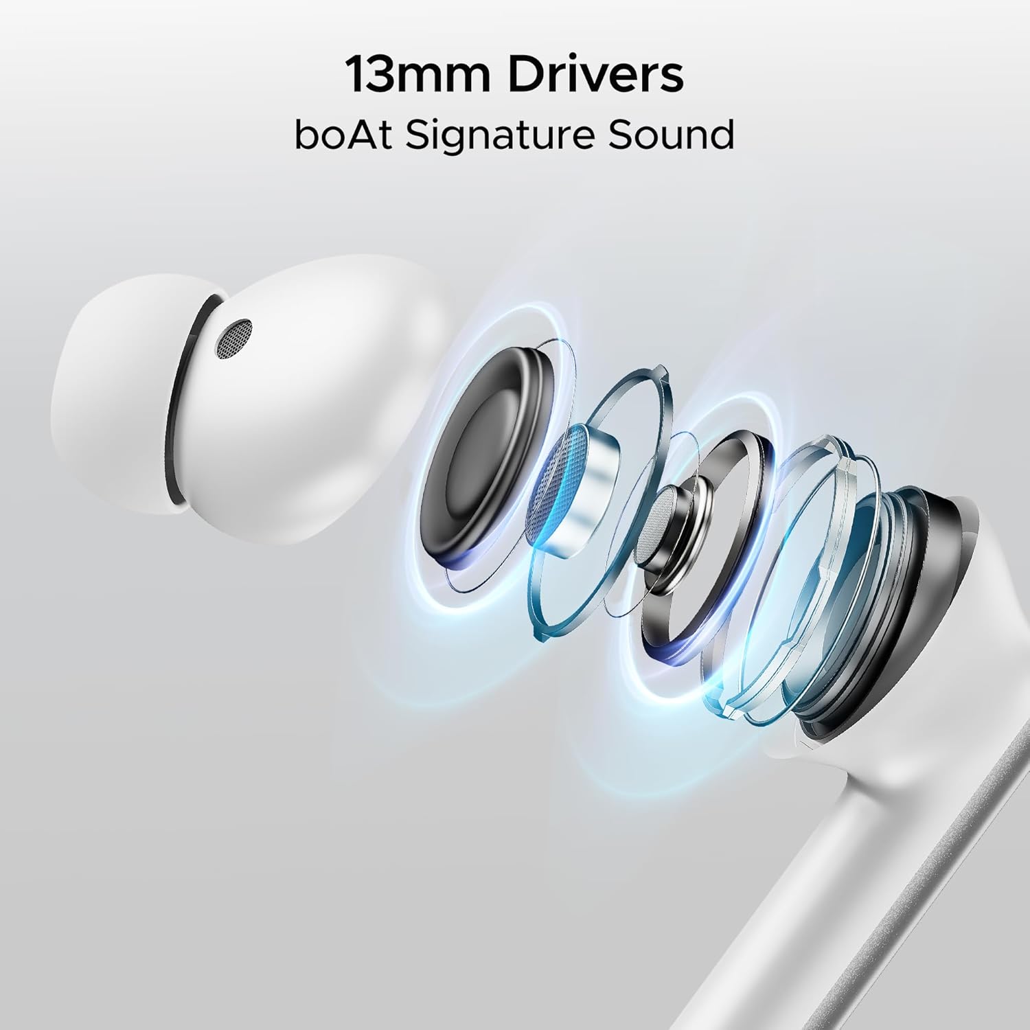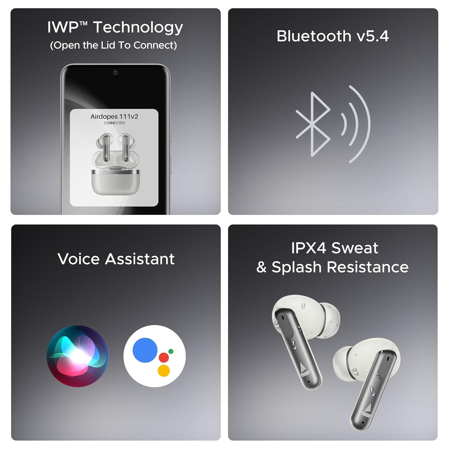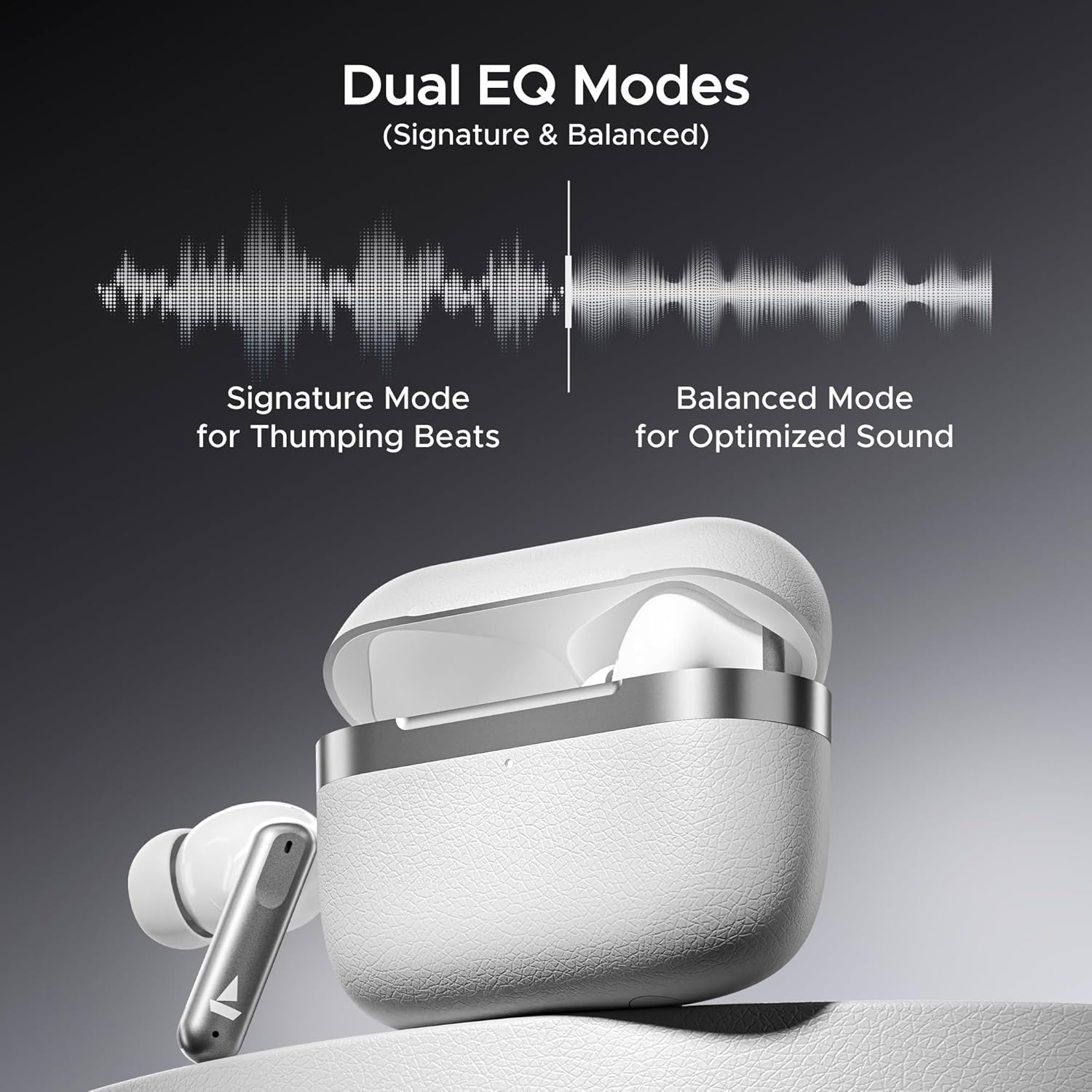boAt Airdopes 111v2, Leather Finish, 4Mics ENx, 50H Battery, 13mm Drivers, Dual Pair,Stream Ad Free Music via App Support, Bluetooth TWS in Ear Earbuds Wireless Earphones with mic ((Ivory White)