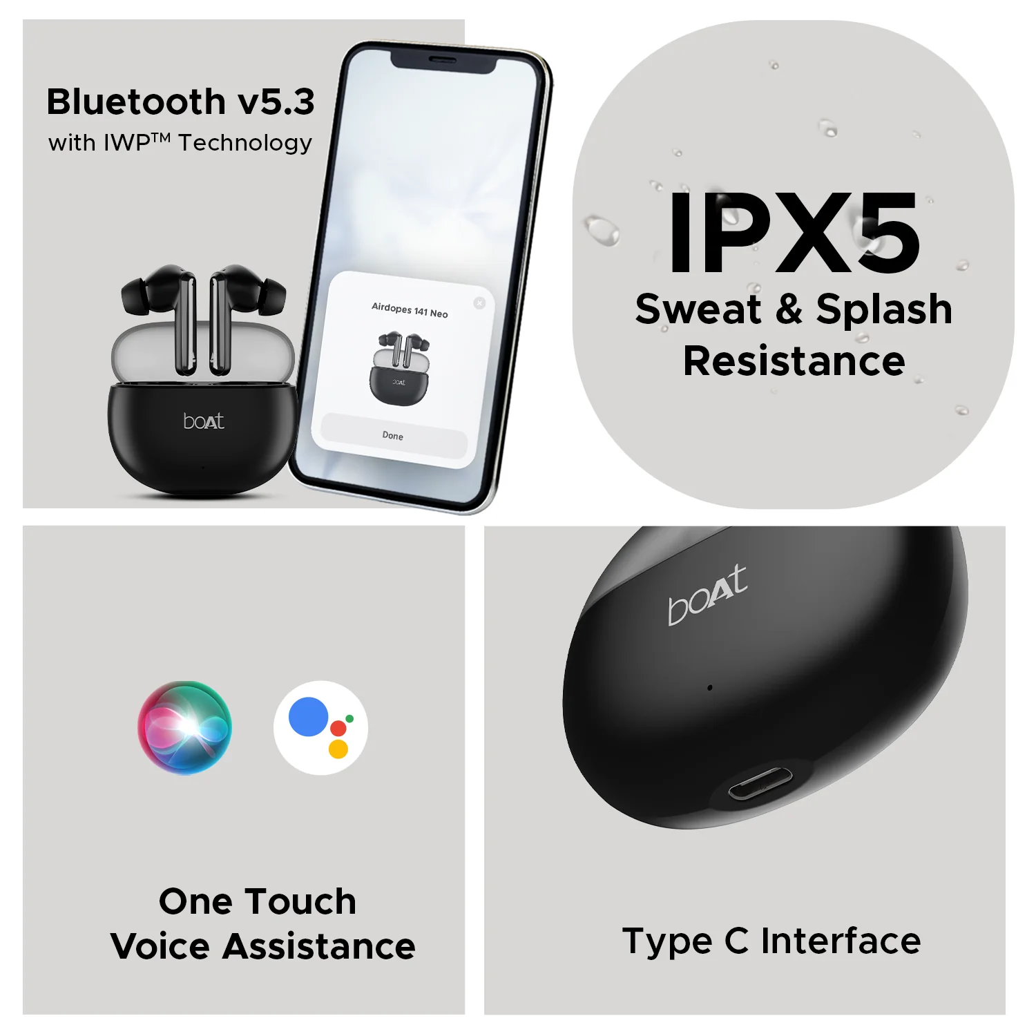 | Special Features | Quad Mics with ENxTM, 50 hrs Playback, boAt Signature Sound |