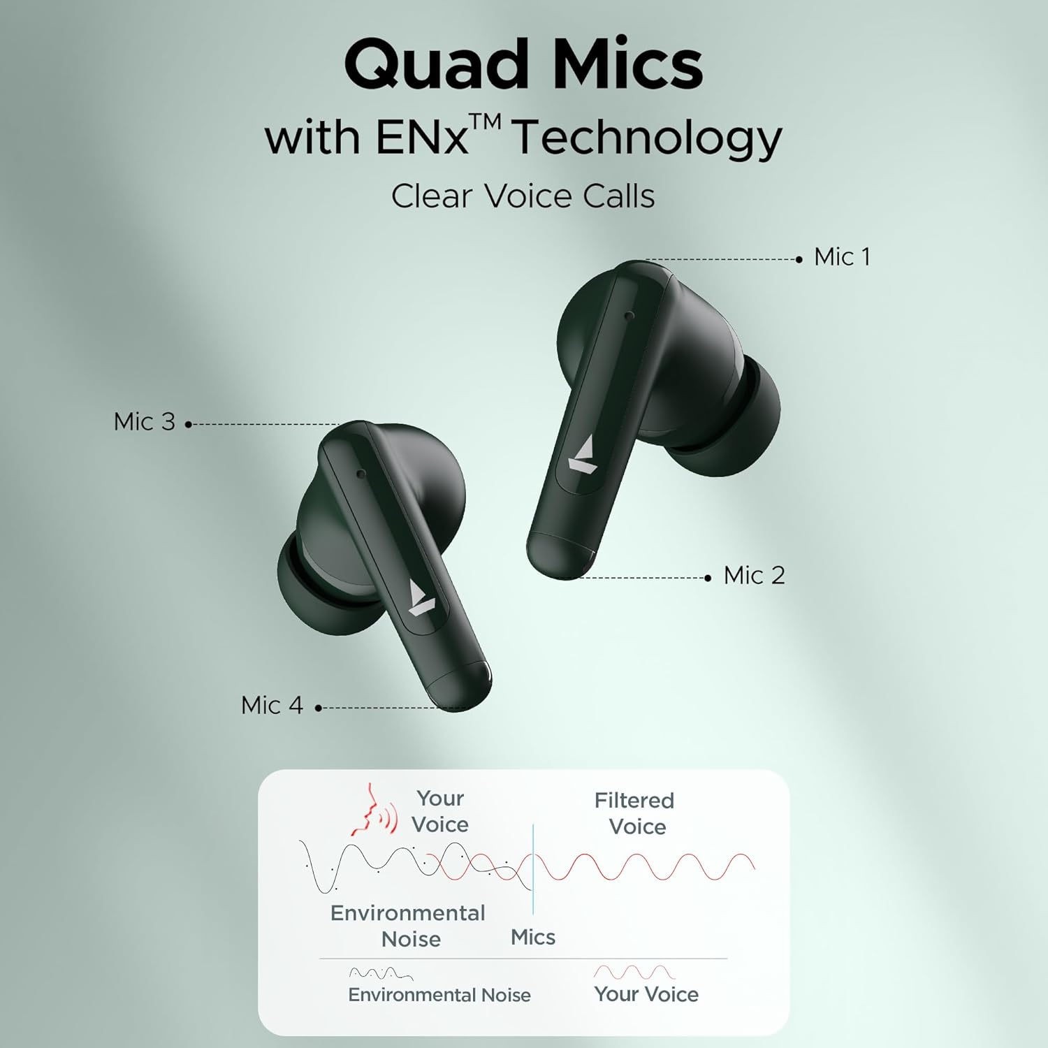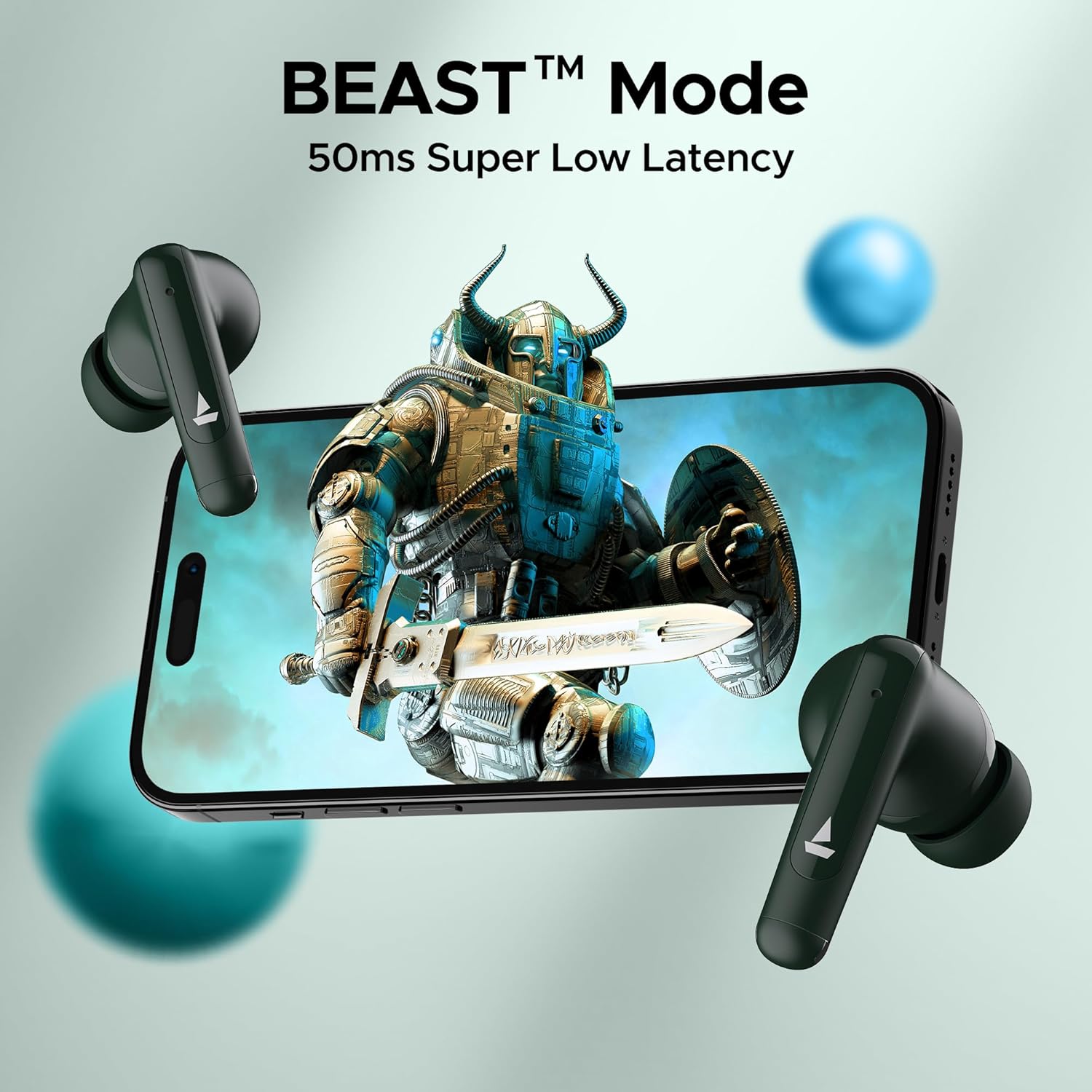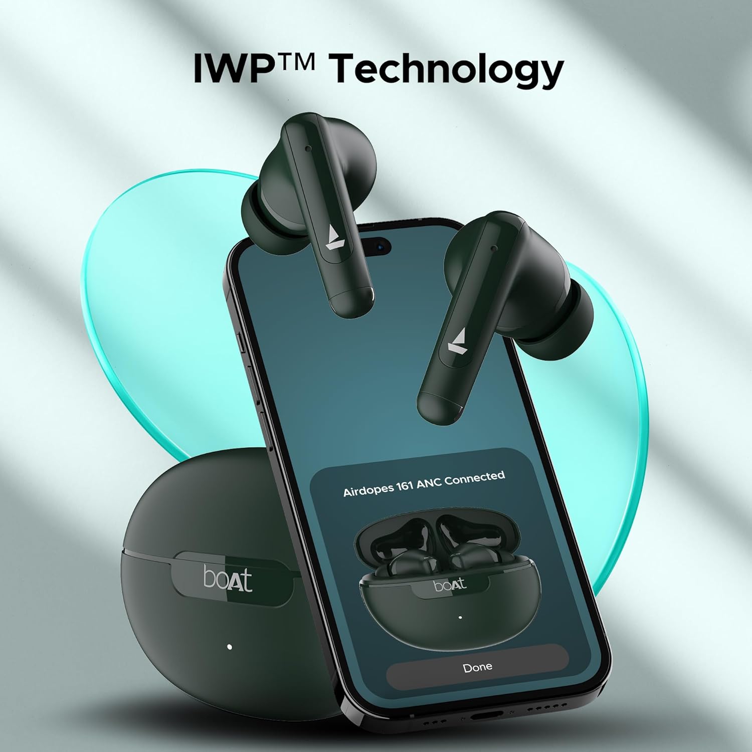 Boat Airdopes 161 ANC TWS Earbuds w/ 32 dB ANC, 50 hrs Playback, 50 ms Low Latency BEASTTM Mode, IWPTM Tech, Dual EQ Modes, 4 Mics with ENx, ASAP Charge, Bluetooth v5.3(Green)