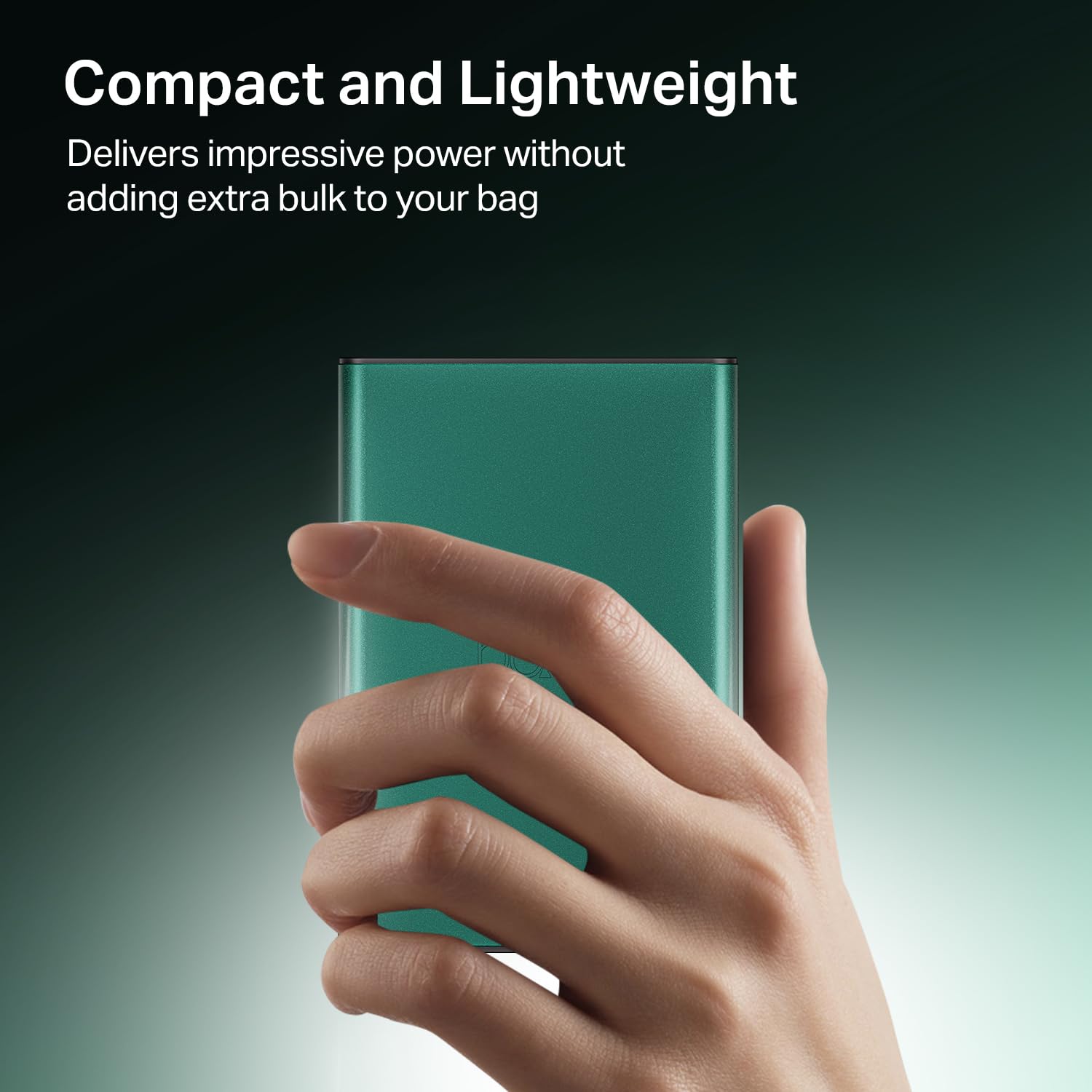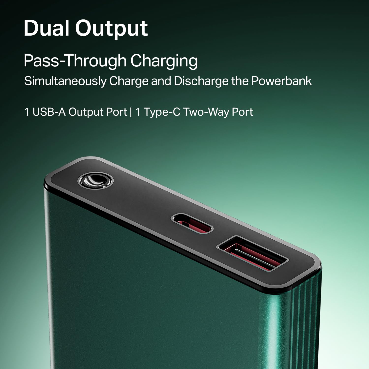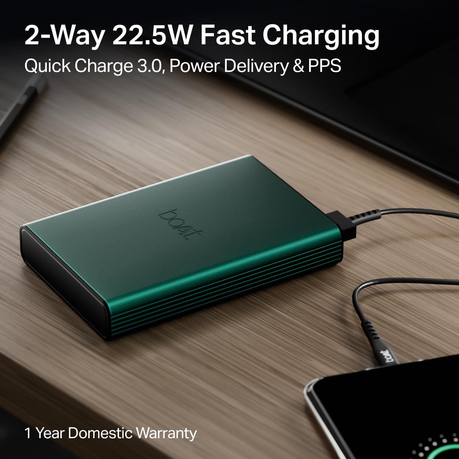 boAt Energyshroom Energyshroom PB300 Pro 10000 mAh 22.5W Pocket Size, Compact Power Bank, Fast Charging (2X Output Ports, Supports Android, iPhone, Tablets, Earbuds, etc.) (Emerald Green)
