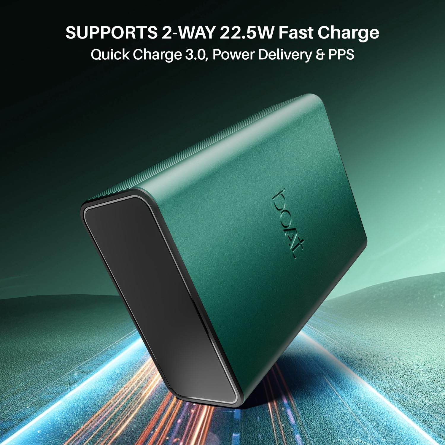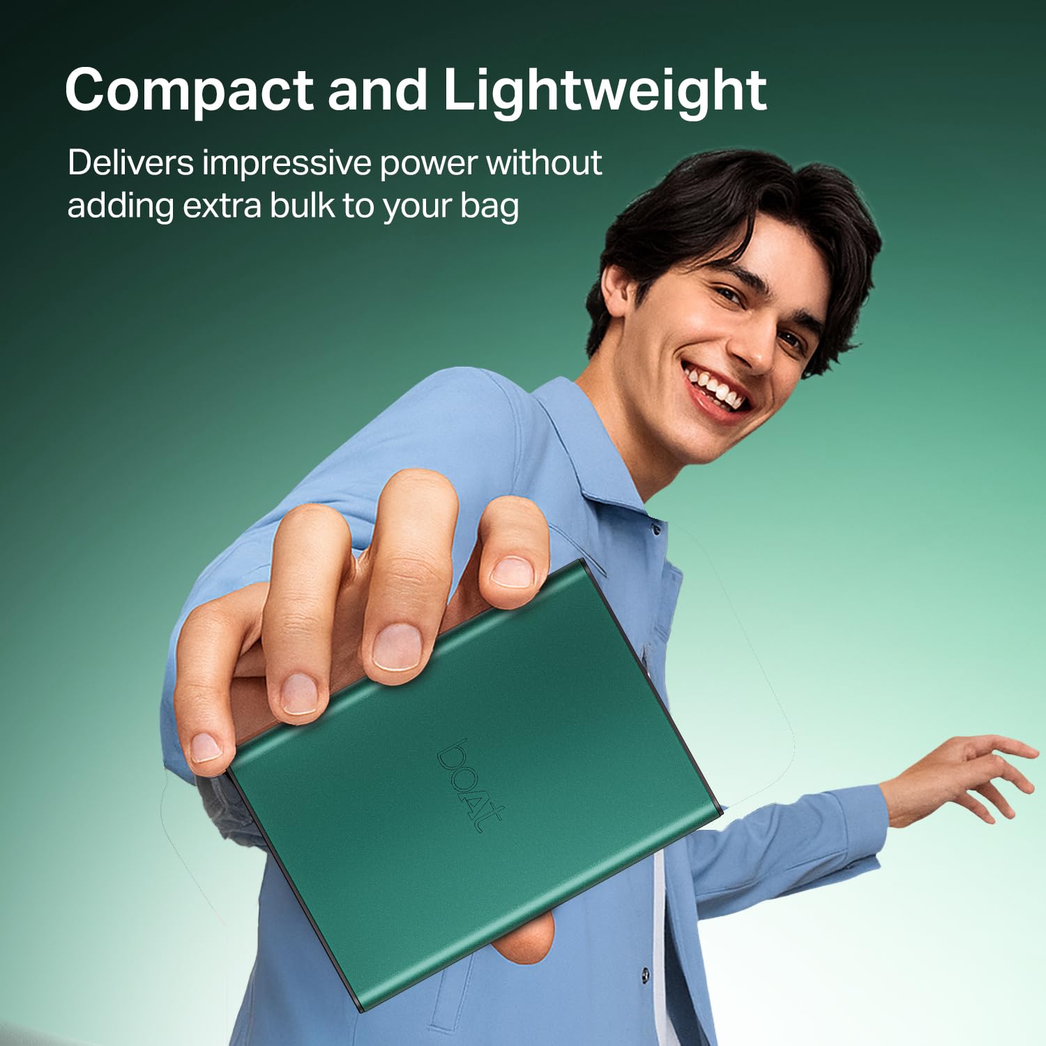 boAt Energyshroom Energyshroom PB400 Pro 20000 mAh 22.5W Pocket Size, Compact Power Bank, Fast Charging (2X Output Ports, Supports Android, iPhone, Tablets, Earbuds, etc.) (Emerald Green)