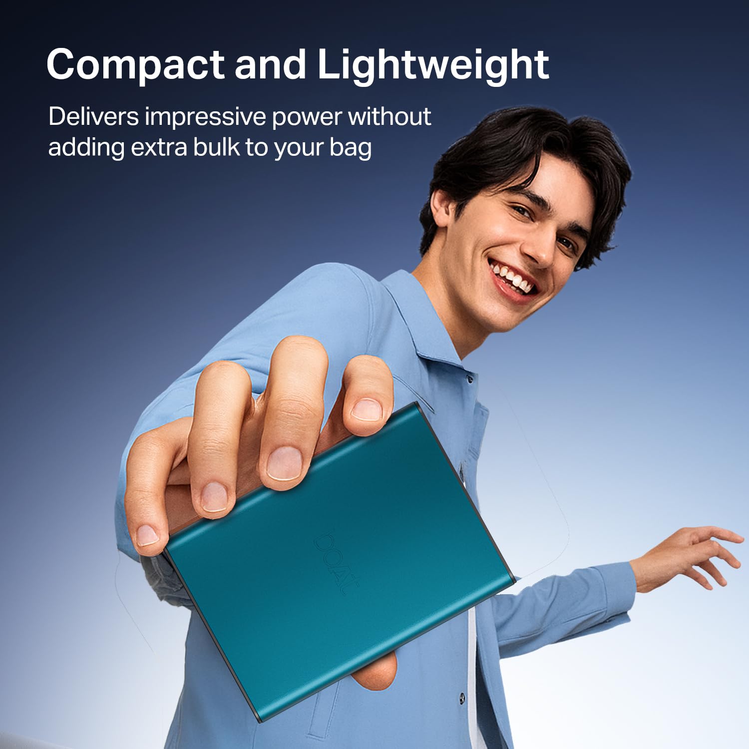 boAt Energyshroom Energyshroom PB400 Pro 20000 mAh 22.5W Pocket Size, Compact Power Bank, Fast Charging (2X Output Ports, Supports Android, iPhone, Tablets, Earbuds, etc.) (Steel Blue)