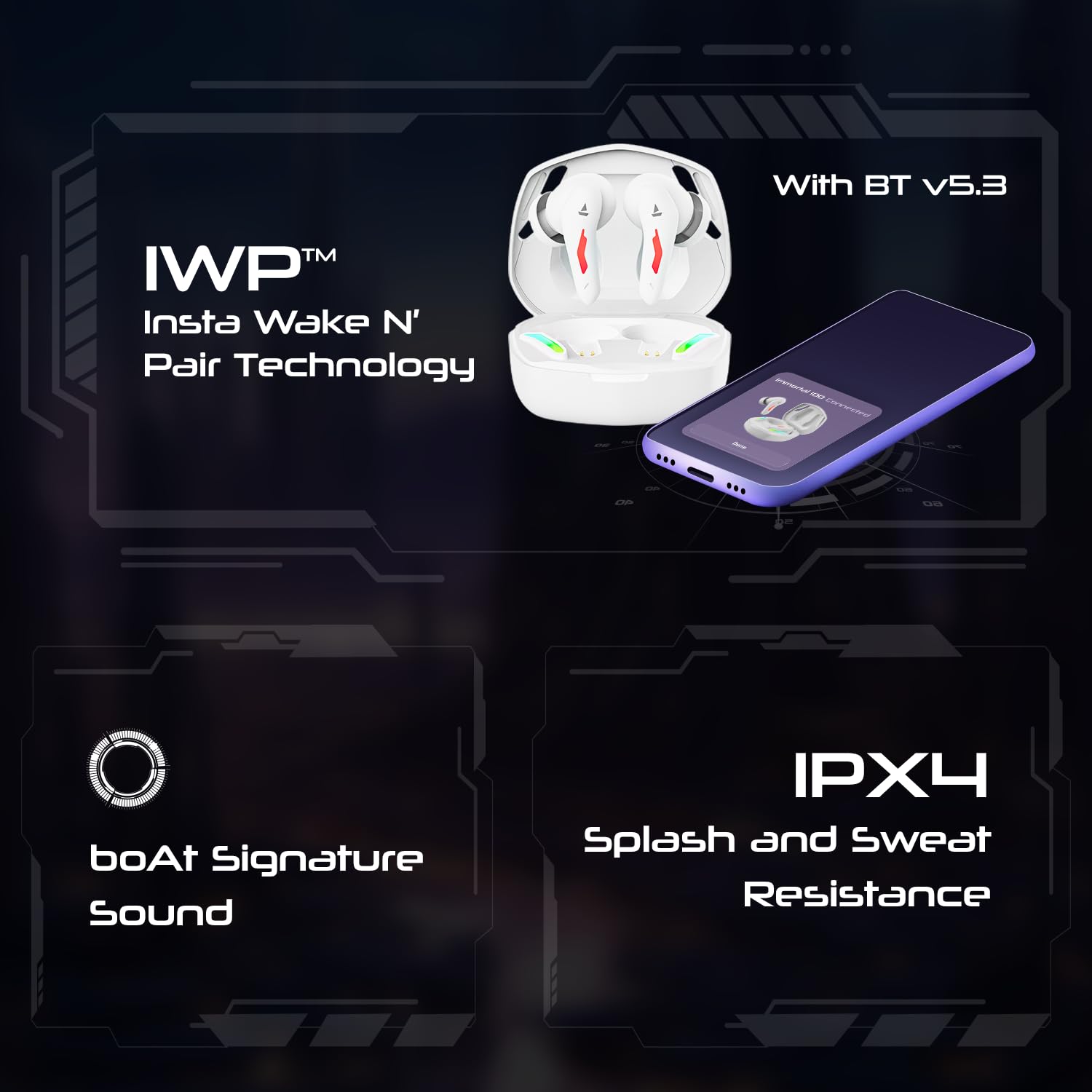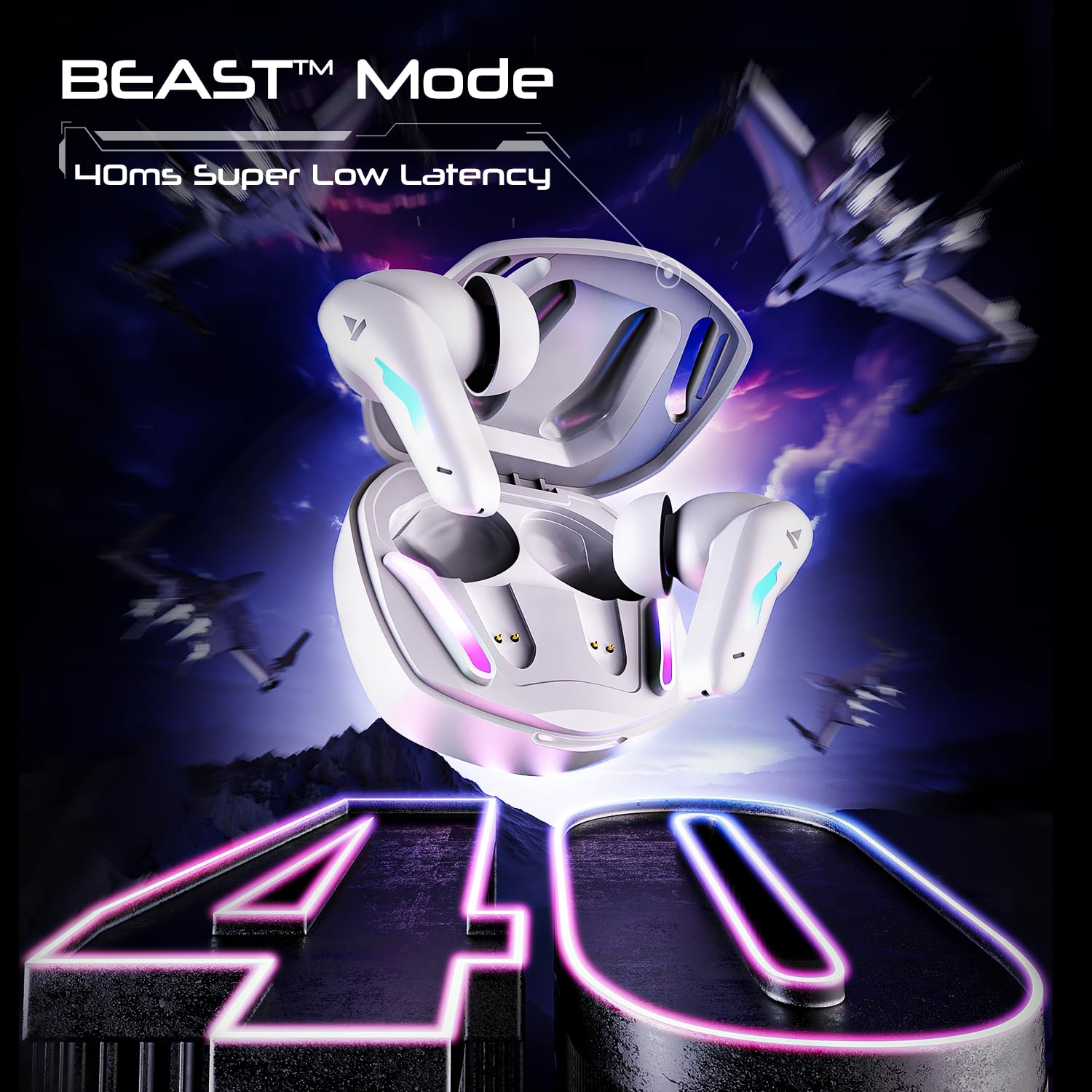 Boat Immortal 100 TWS Earbuds with Beast Mode(40ms Low Latency), 30 Hours Playback & RGB LEDs Bluetooth Ear Buds (White Sabre)
