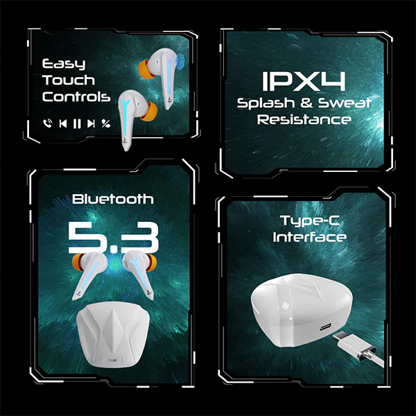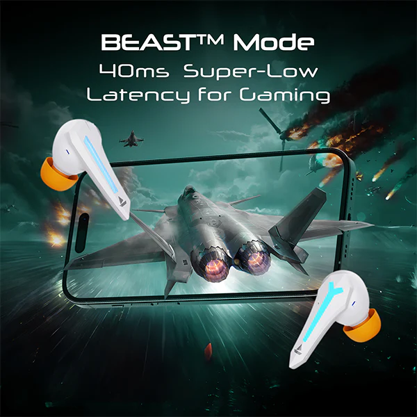 boAt Immortal 111 in Ear TWS Earbuds with up to 40 Hours of Playtime, 40 ms Super-Low Latency Beast Mode, RGB LEDs, Quad Mics with ENx Tech, ASAP Charge, IWP Tech, IPX4, BTv5.3(White Sabre)
