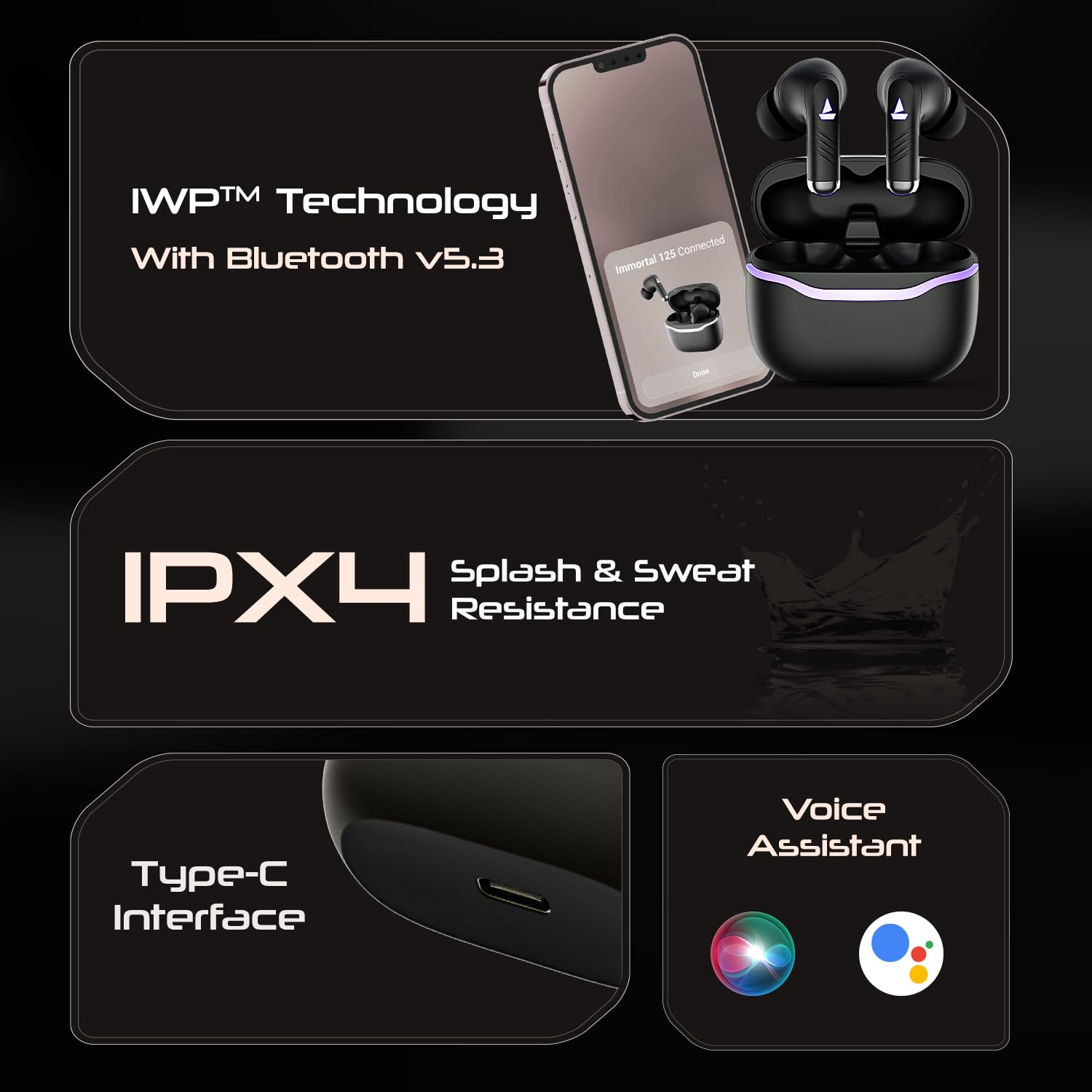 Boat Immortal 125 TWS in-Ear Earbuds w/up to 40 hrs Playtime, Quad Mics with ENx Tech, Beast Mode with 40 ms Super Low Latency, ASAP Charge, IPX4 Resistance, RGB LED Lights, BT v5.3(Black Sabre)