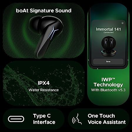 boAt Immortal 141 TWS Gaming in Ear Earbuds with Enx Tech,Up to 40 Hrs Playtime,Signature Sound,Beast Mode,Ipx4 Resistance,Iwp Tech,RBG Lights,&USB Type-C Port(Black Sabre)