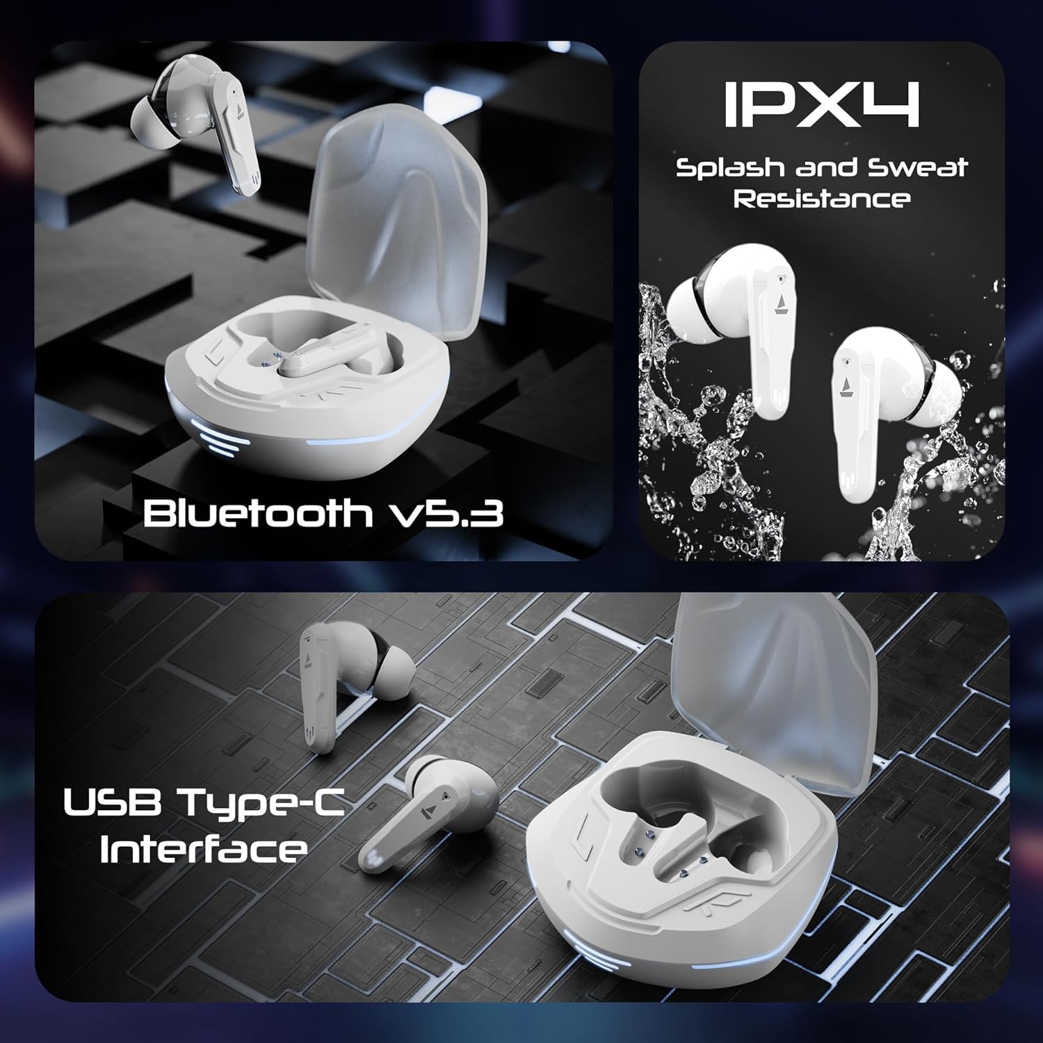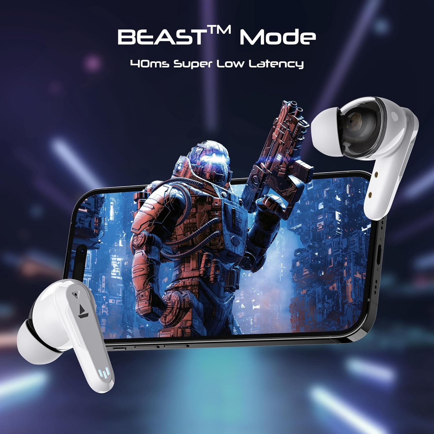 boAt Immortal 181 in Ear TWS Gaming Earbuds with up to 40 hrs Playtime,Quad Mics with ENx Tech,Beast Mode with 40ms Latency,ASAP Charge,IPX4,IWP, RGB LED Lights, BTv5.3(White Sabre)