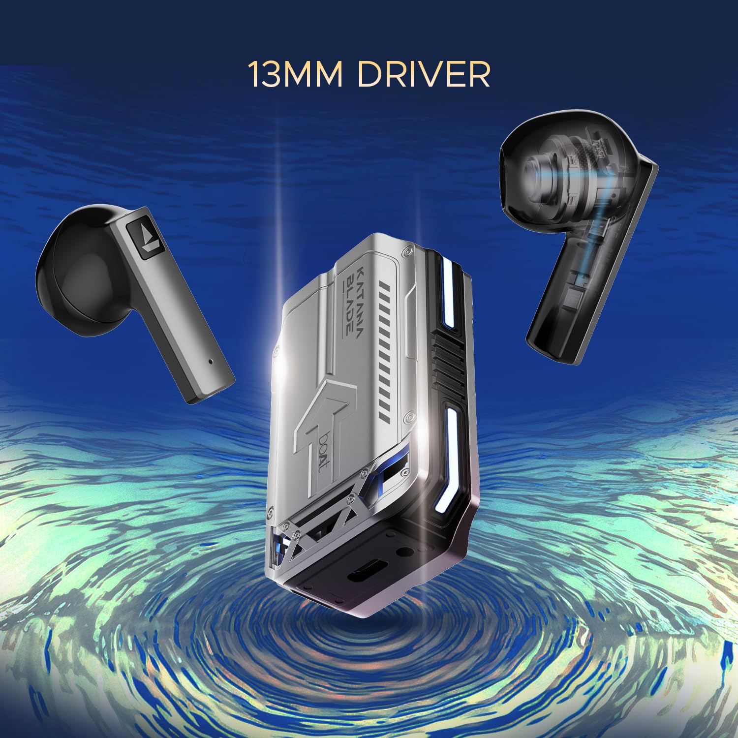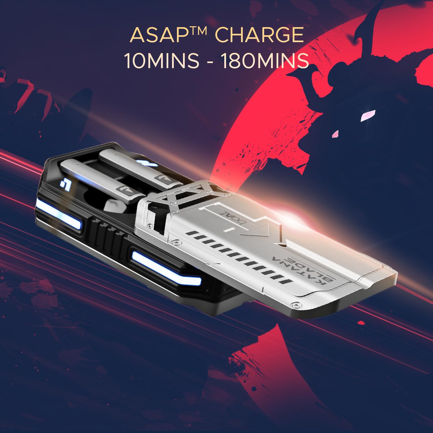 boAt Immortal Katana Blade in Ear TWS Gaming Earbuds with Metal Glider, RGB LEDs, 50ms Latency, Upto 50 Hrs Playtime, ASAP Charge, Gliding Blade Sound, 13mm Driver, IWP (Blade Gray)