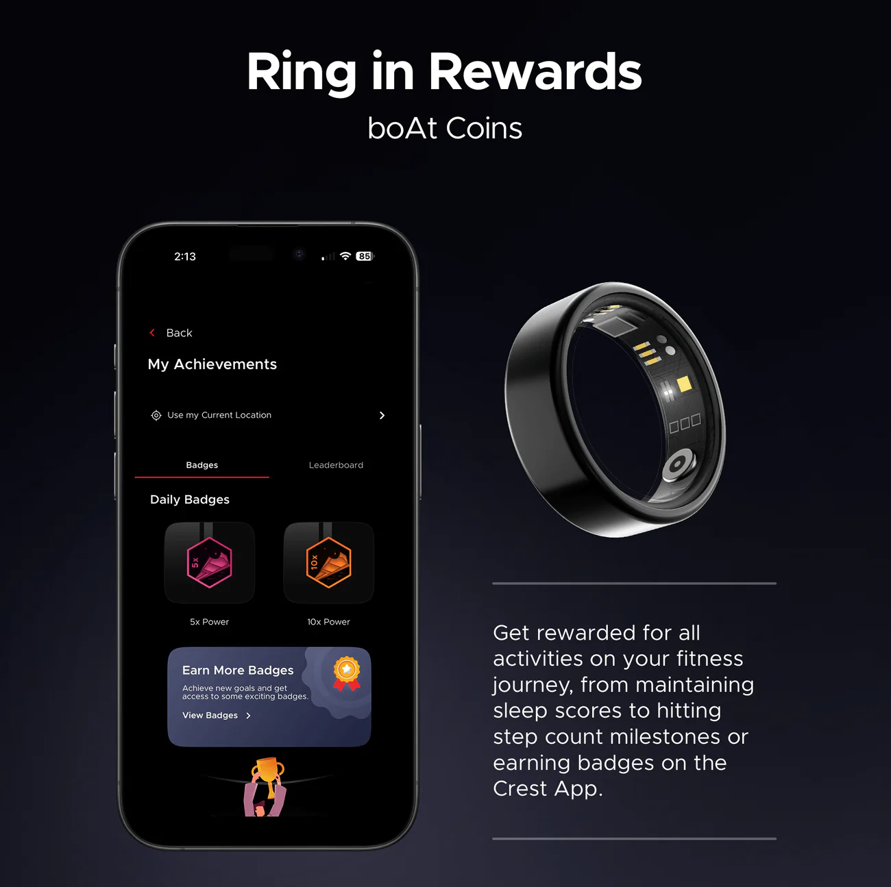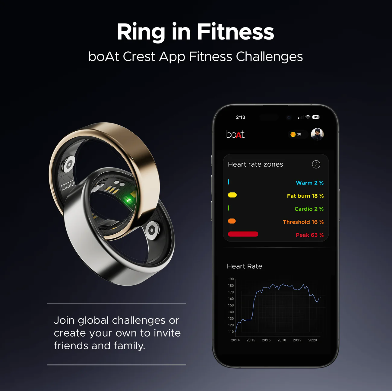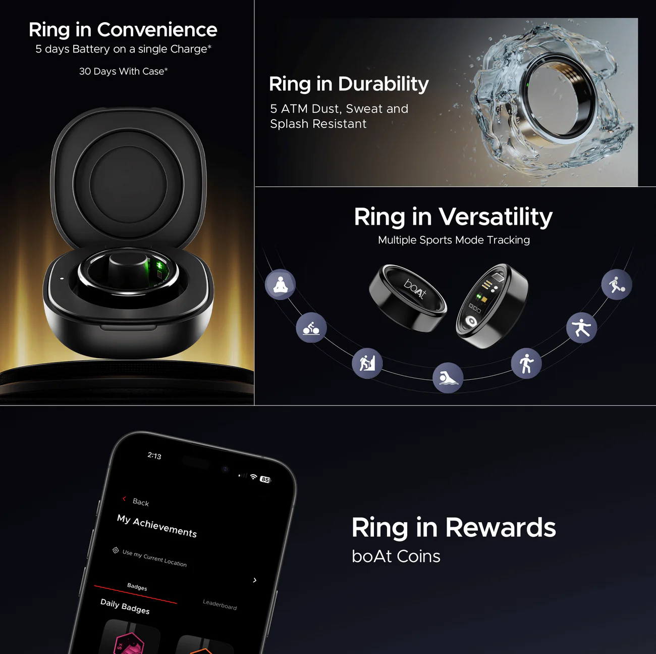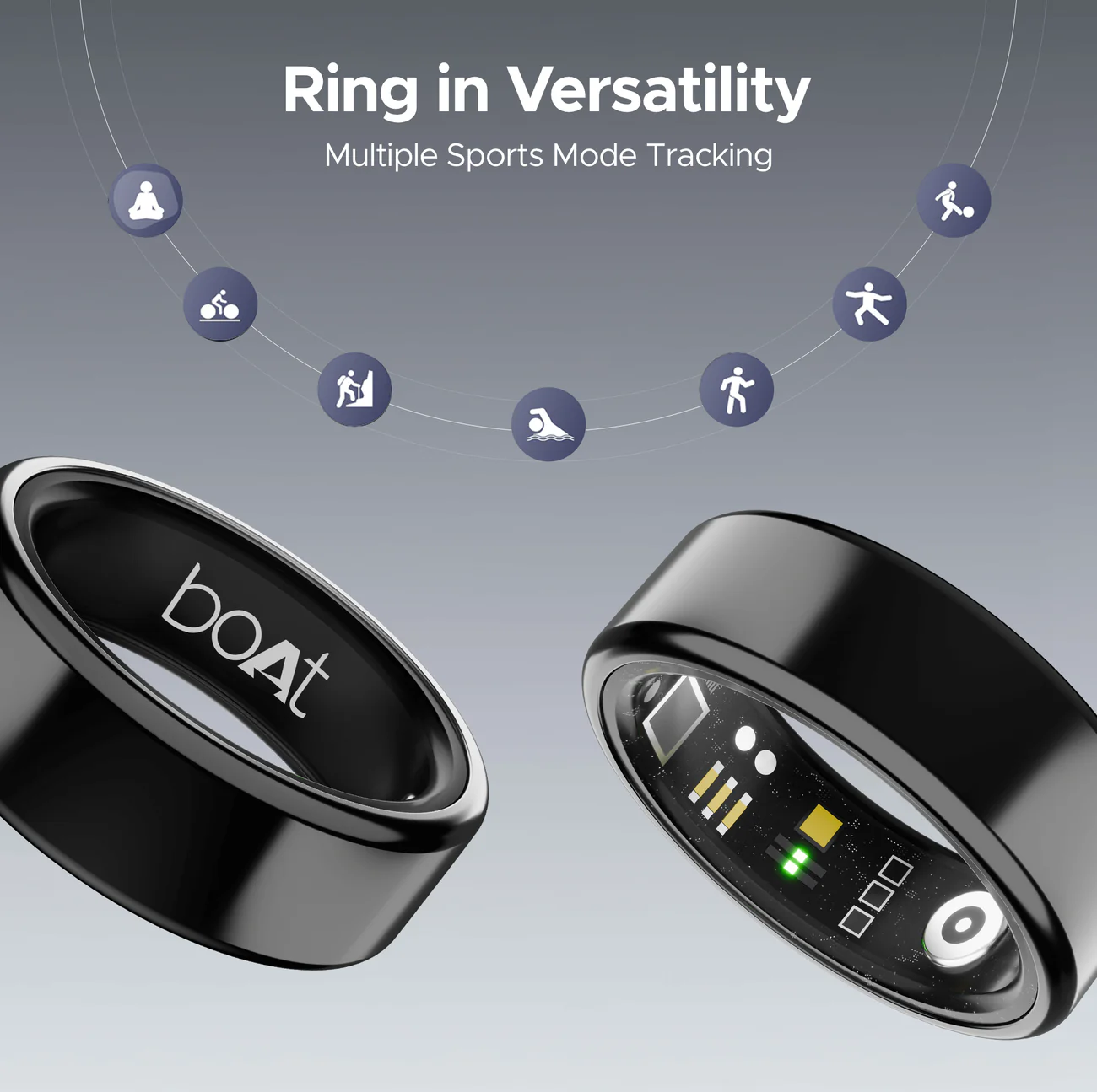 boAt New Launch SmartRing Active Plus, Auto Heart Rate, Sleep, SpO2, Stress & Skin Temperature Monitor, Stainless-Steel Build, Lightweight, 30-Days Battery, Magnetic Charging Case (Midnight Black)