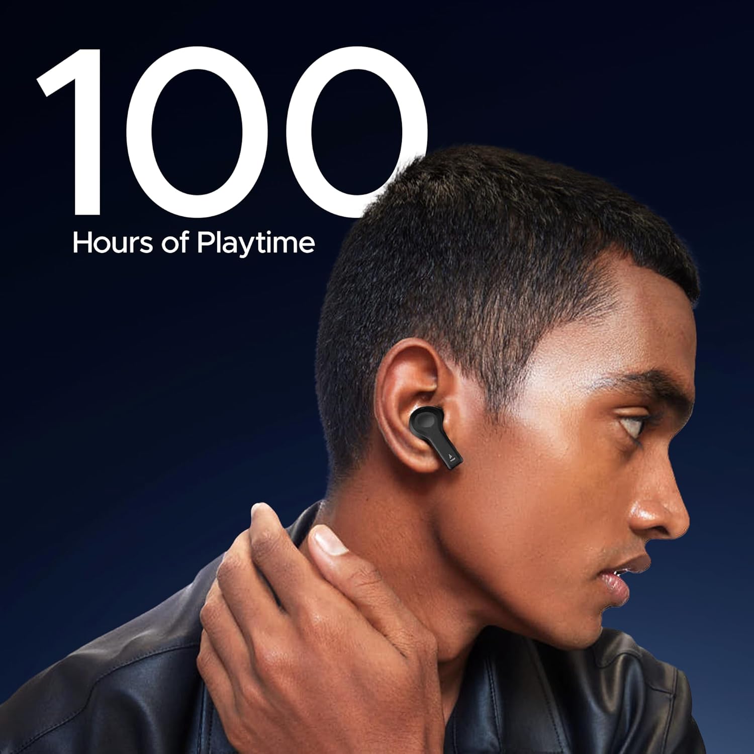 Boat Nirvana Space, 360º Spatial Audio, Active Noise Cancellation (~32dB), 100Hrs Battery,4Mics ENx, Fast Charge, v5.3 Bluetooth Earbuds, TWS Ear Buds Wireless Earphones with mic (Cosmic Black)