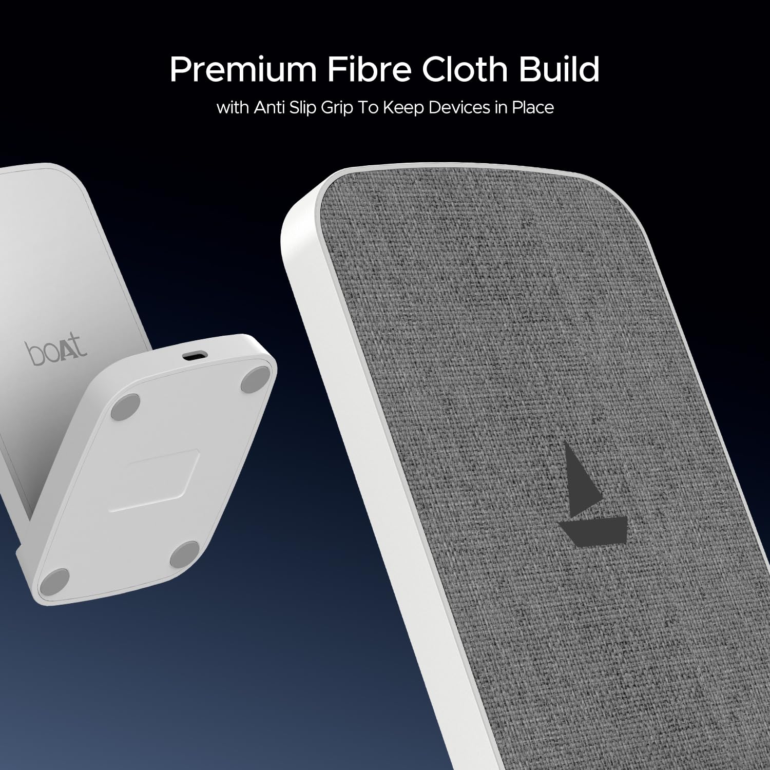 boAt Powerpod 200 Charger w/15W Wireless Charging, Power Bank, Premium Fiber Cloth Build, Dual Coils Micro USB Input, Anti-Slip Grip, 6mm Transmission Range, Smart IC Protection, LED Indicator(White)
