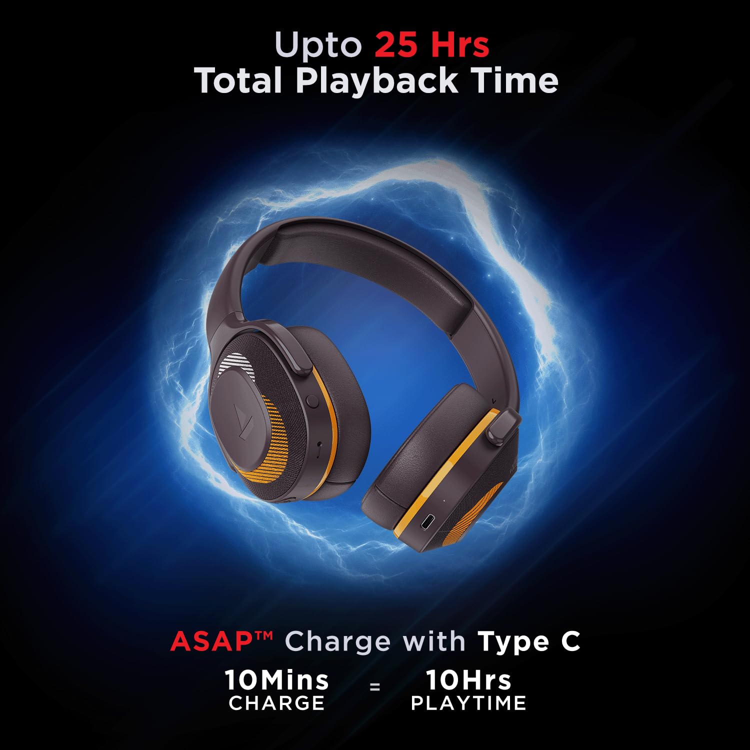 Boat Rockerz 425 Bluetooth Wireless Over Ear Headphones with Mic Signature Sound, Beast Mode for Gaming, Enx Tech, ASAP Charge, 25H Playtime, Bluetooth V5.2 (Active Black)