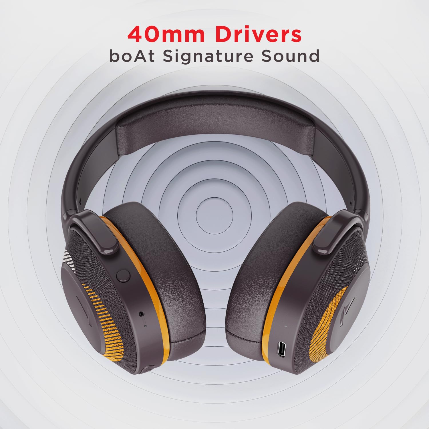 Boat Rockerz 425 Bluetooth Wireless Over Ear Headphones with Mic Signature Sound, Beast Mode for Gaming, Enx Tech, ASAP Charge, 25H Playtime, Bluetooth V5.2 (Calm Orange)