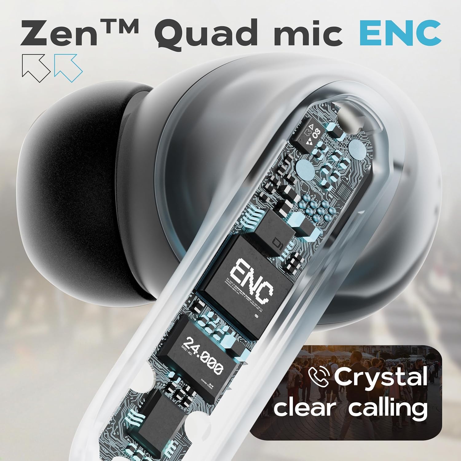 | Special Feature | ‎100H Playtime, 13mm Rich Bass Drivers, Built-In Voice Assistant, Fast Charging, Low Latency Gaming, Quad Mic ENC for Crystal Clear Calls, Touch Control, Volume Control, Wireless Charging, Zen Quad Mic ENC |