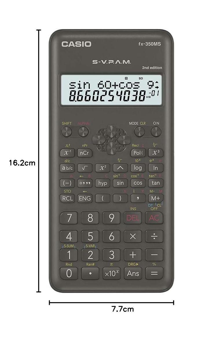 Casio Fx-350Ms 2Nd Gen Non-Programmable Scientific Calculator, 240 Functions and 2-Line Display, Black