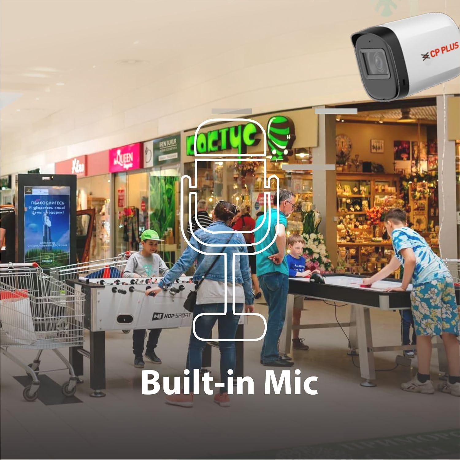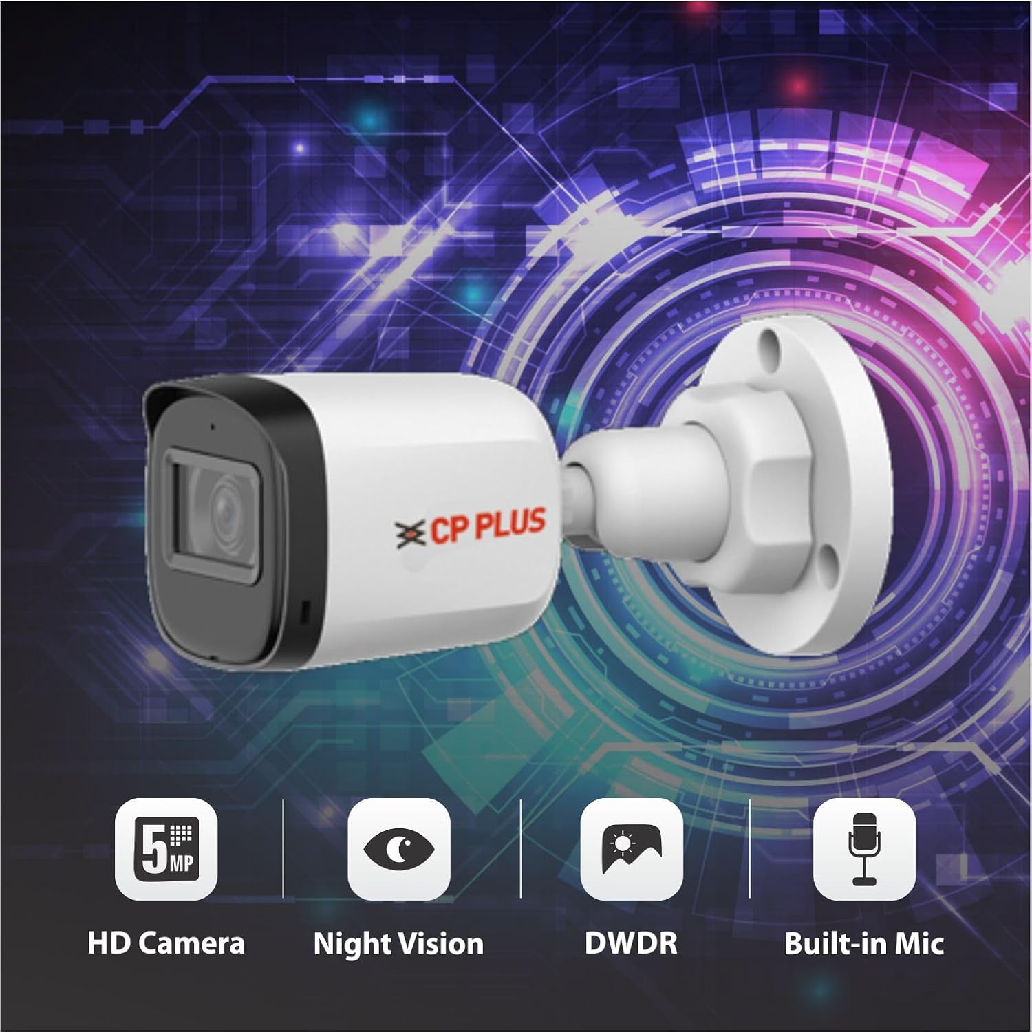 CP PLUS 5MP Outdoor Bullet CCTV Camera | 3.6mm Fixed Lens | Smart IR Night Vision 30M | Built-in Mic | 2D DNR | BLC | Analog 4-in-1 AHD/TVI/CVI/CVBS Output | HD Surveillance Camera | CP-URC-TC51PL3C