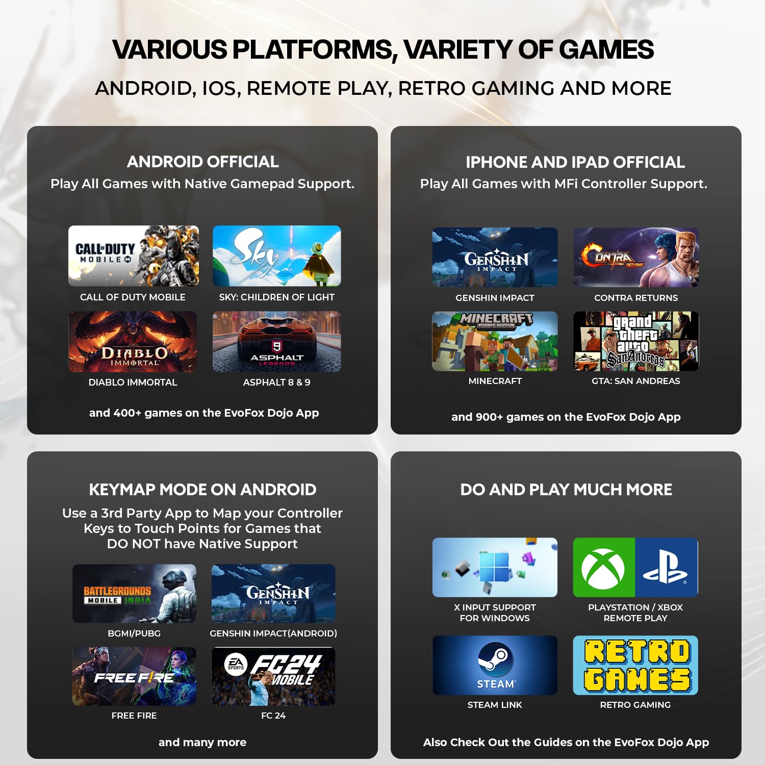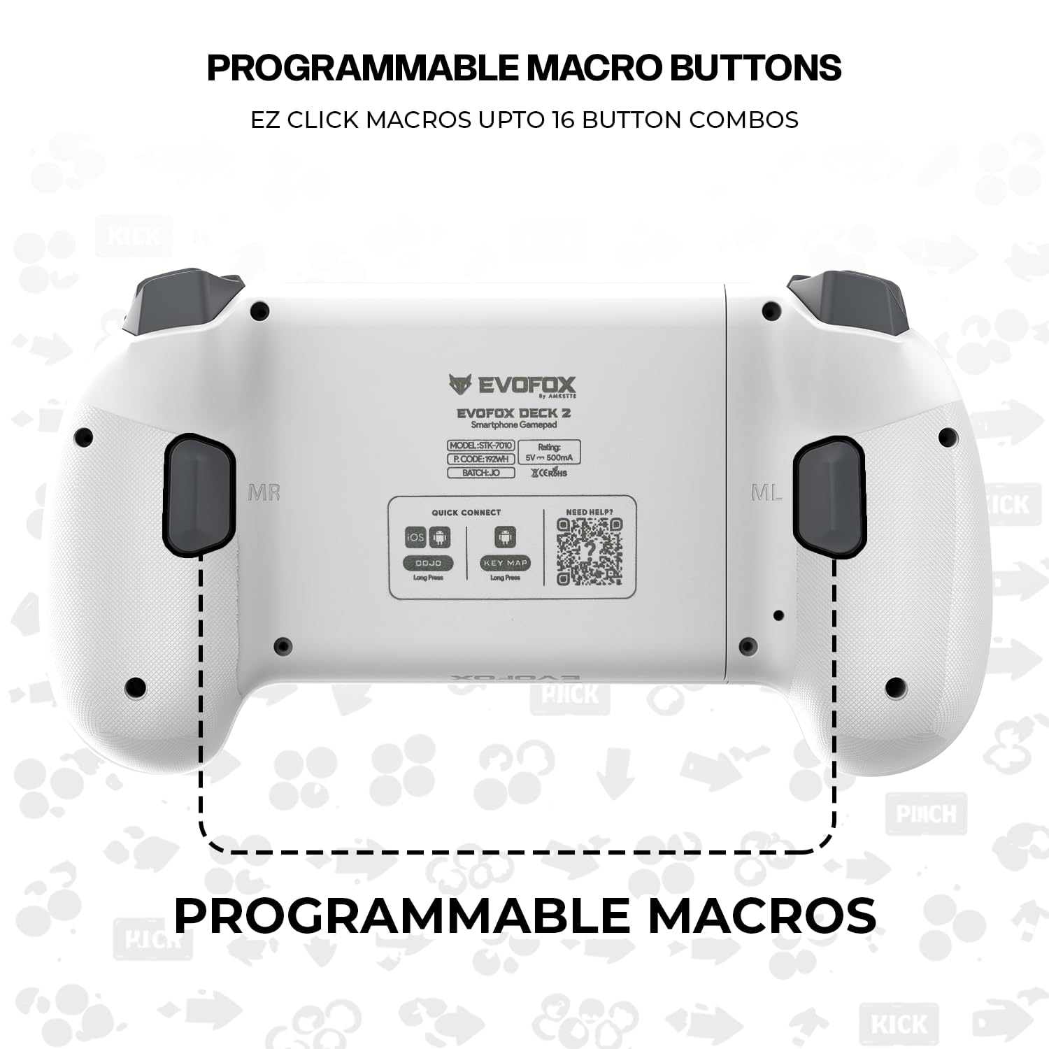 EvoFox Deck 2 Smartphone Gamepad with Hall Effect Triggers & Joysticks | Bluetooth Wireless Controller for Android, iOS, Windows, macOS & Nintendo Switch | Key Mapping, Macro Buttons, RGB Lighting