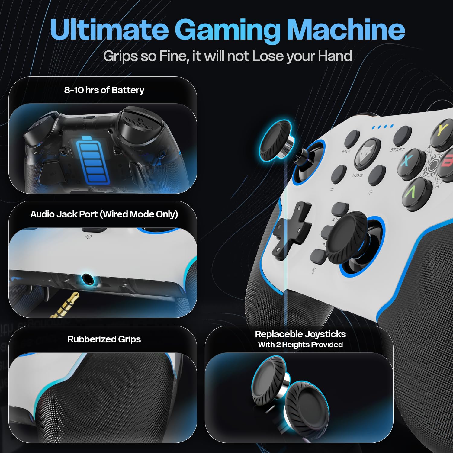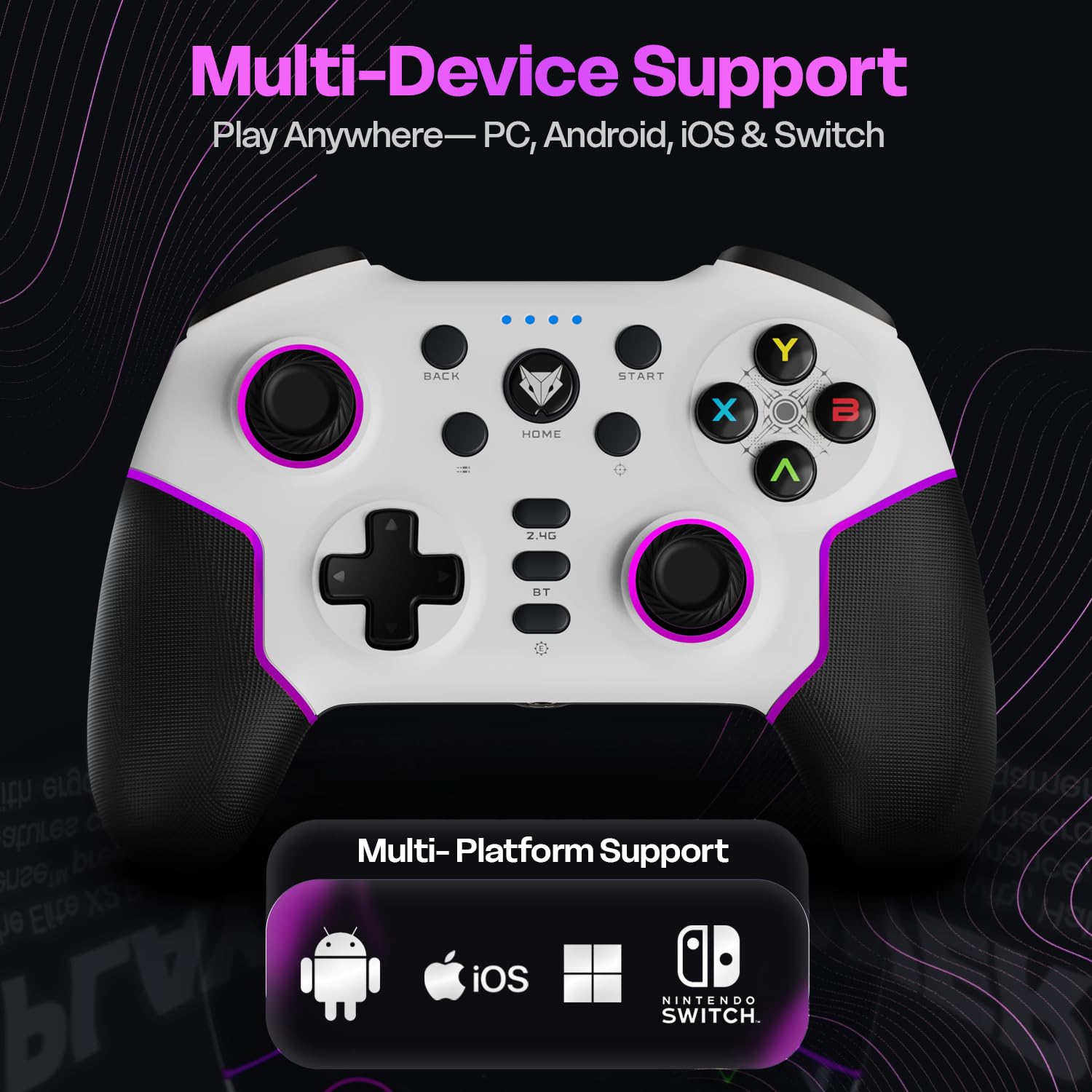 EvoFox Elite X2 Pro Gaming Controller for PC, Android, TV, Switch Tri-Mode -2.4G/BT/Wired Gamepad, HallSense Magnetic Triggers & Joystick, 1000Hz Polling, RGB, Replaceable JoySticks,16h Battery-White