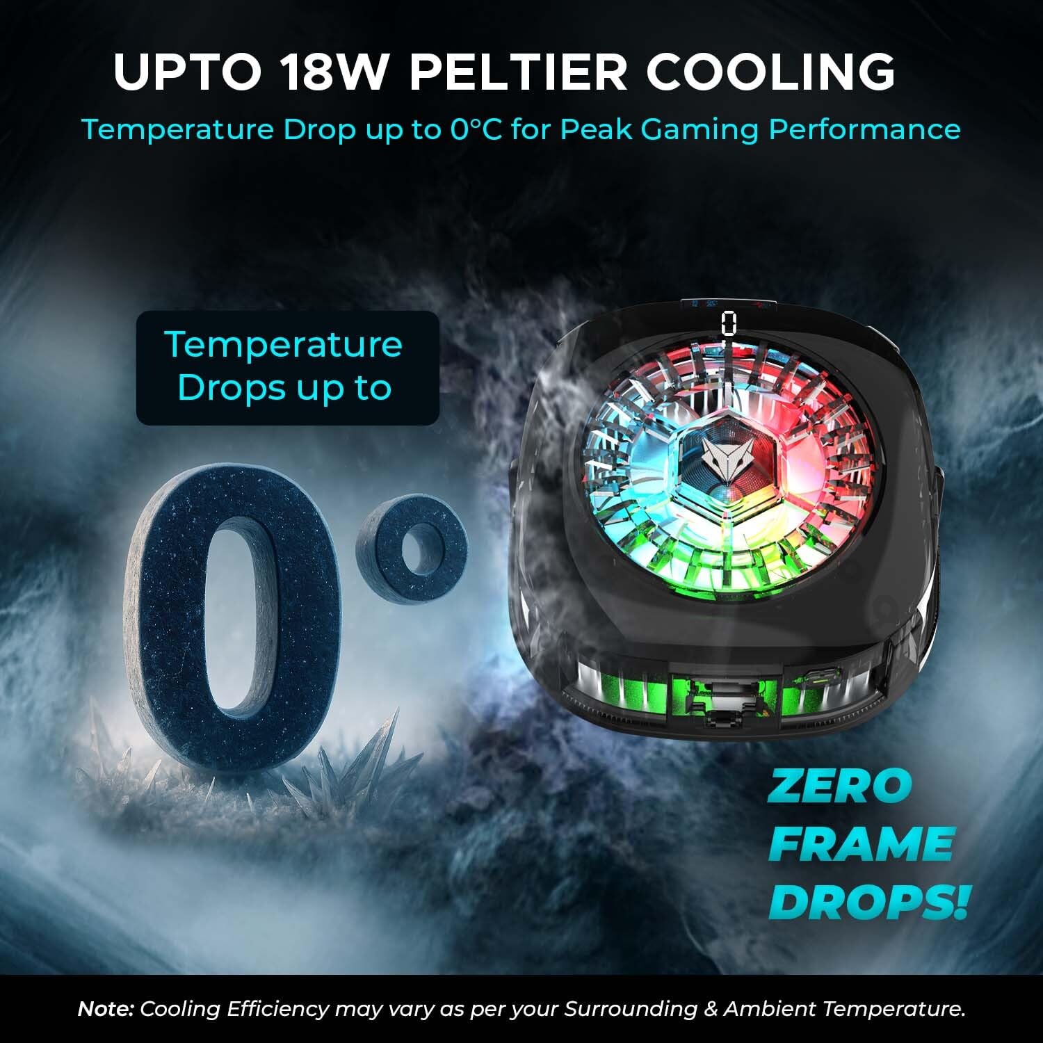 EvoFox Hailstone 2 18W Phone Cooler for Gaming, 2 in 1 [MagSafe+Clamp] Mounting | Instant Cooling, Semiconductor Tech Enhanced Refrigeration Chip Reaches 0°C|7-Blade 6000 RPM | RGB | Type-C & Display