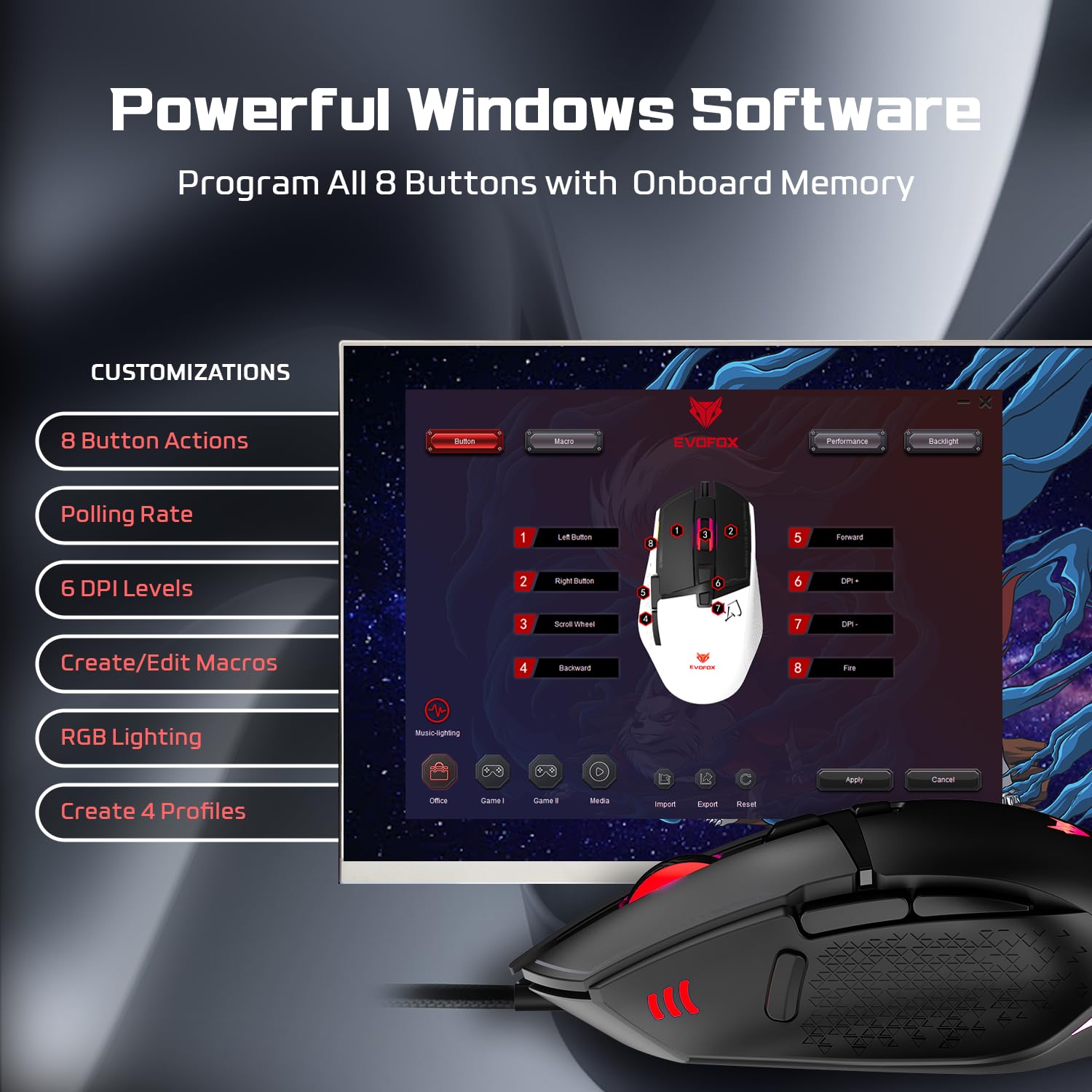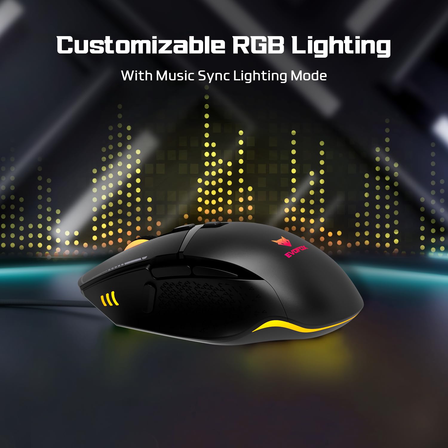 EvoFox Phantom 2 Programmable Gaming Mouse, 8 Programmable Buttons | High Performance 1000Hz Polling Rate | Ultra-Responsive 7000 FPS | 12800 DPI | RGB Lights with Music sync Mode, Windows Software