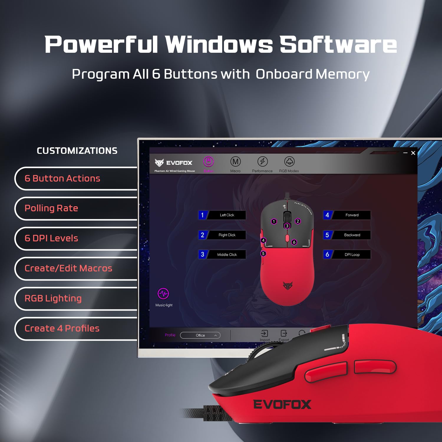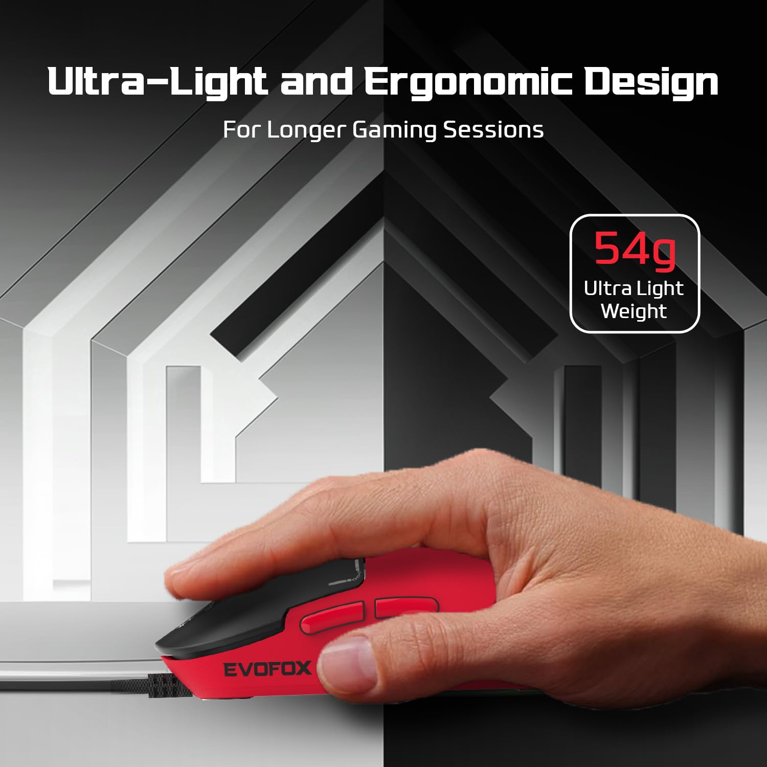 EvoFox Phantom Air Ultra Lightweight Gaming Mouse | Upto 1000Hz Polling Rate, 7000 FPS, 12800 DPI | Honeycomb RGB Lighting | Fully Programmable with Windows Software & On-Board Memory | Red