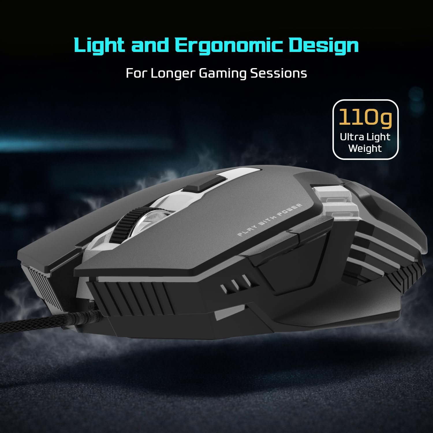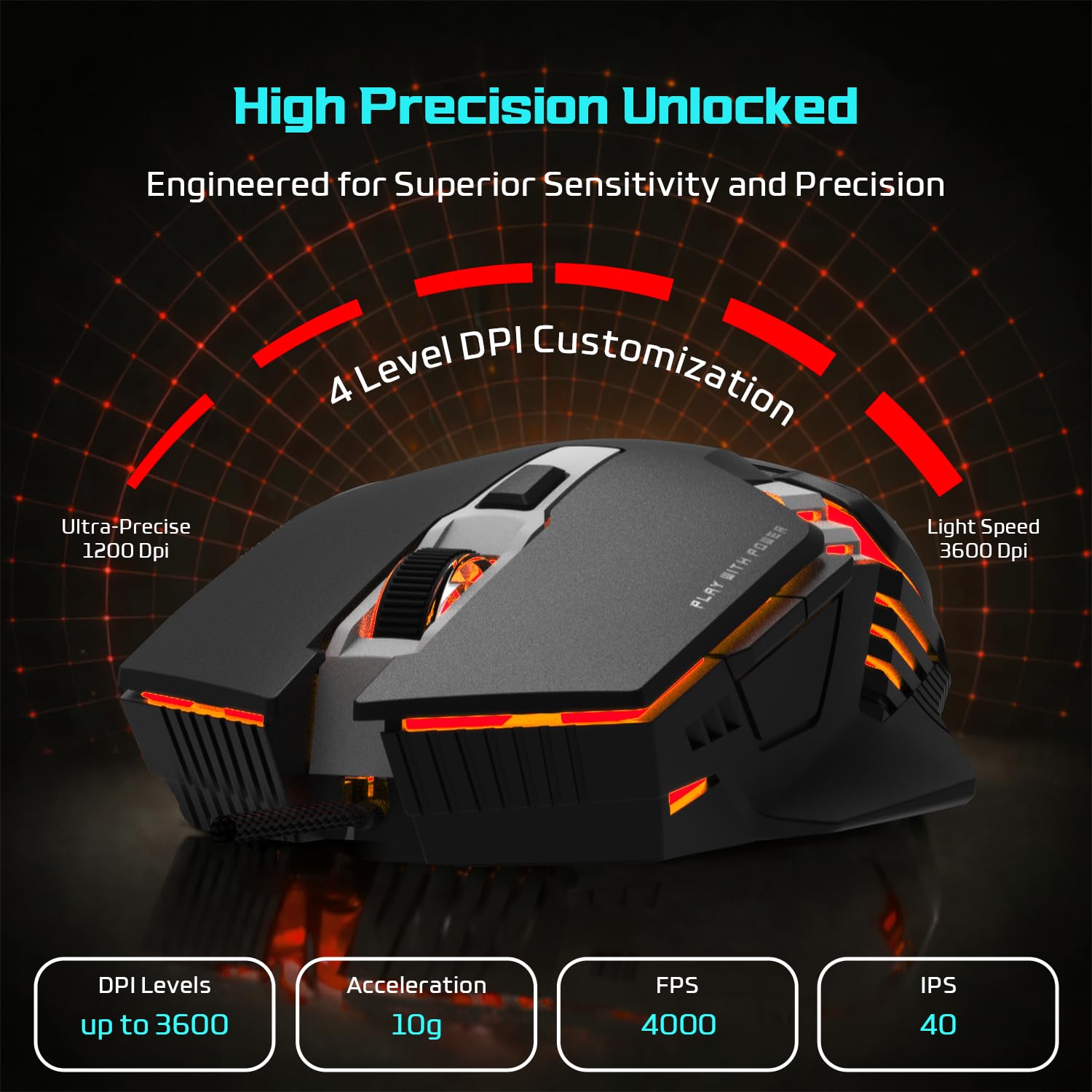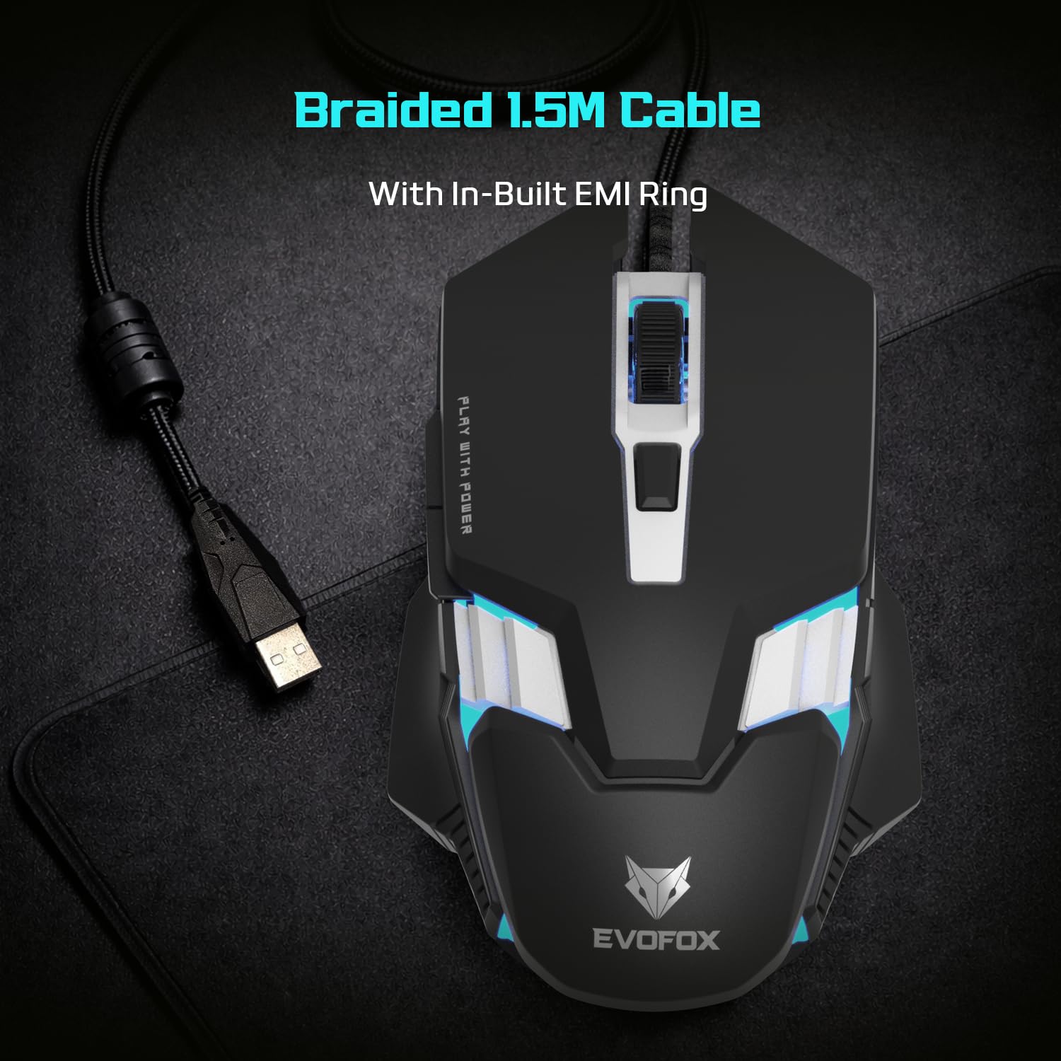 EvoFox Starter Series Spectre USB Wired Gaming Mouse with Upto 3600 DPI Gaming Sensor | 6 Buttons Design | Upto 7 Million Clicks | 7 Colours Rainbow Lighting | 1.5m Braided Cable (Black)