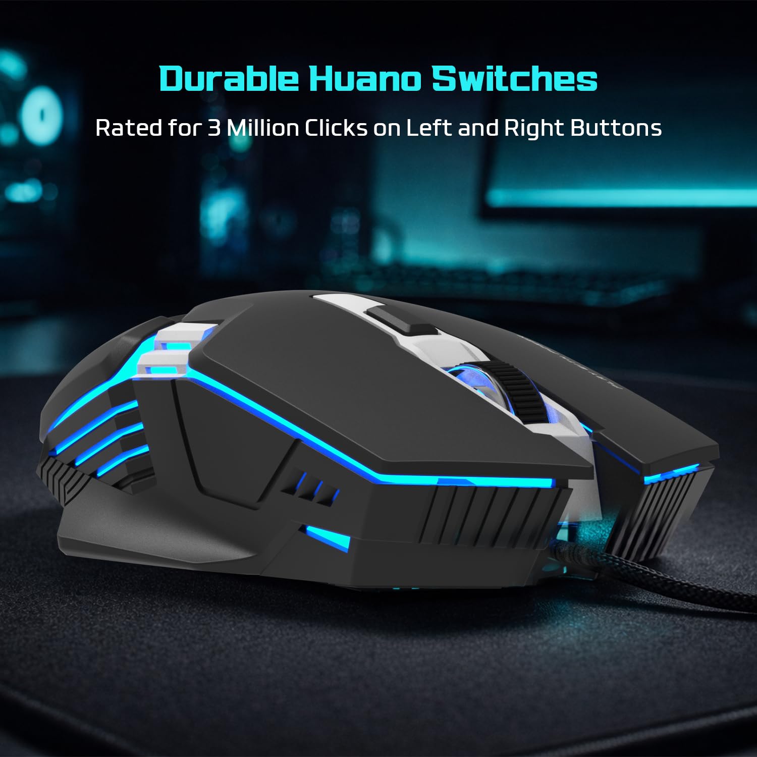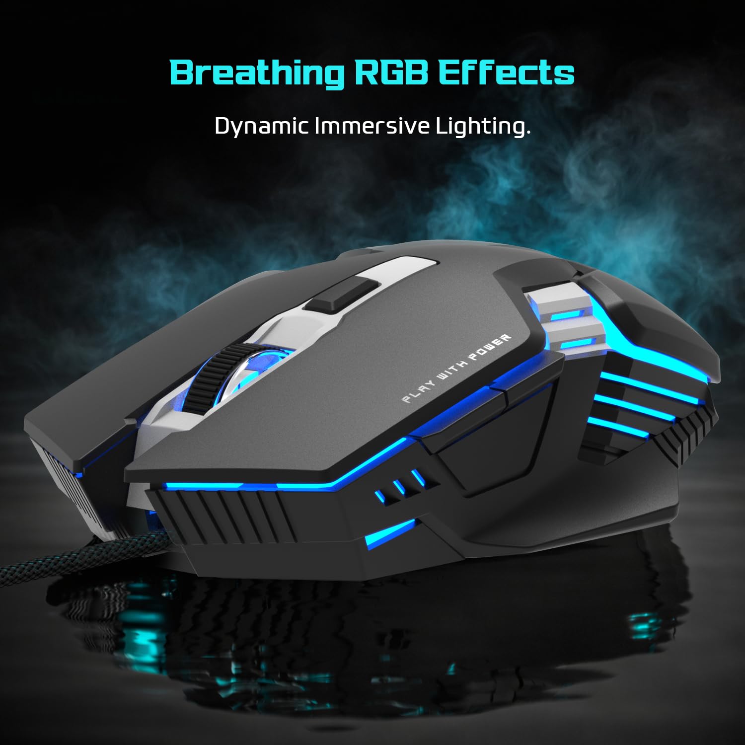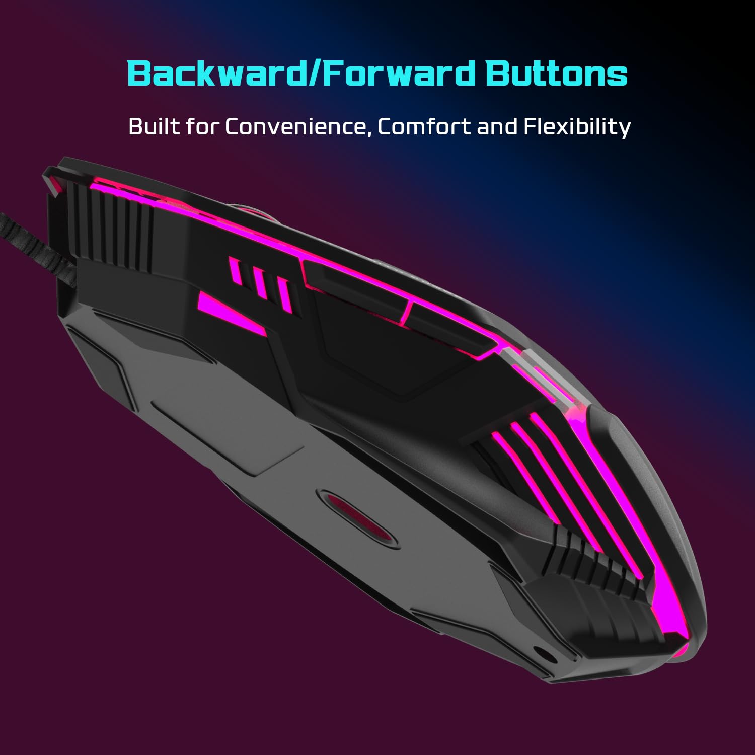 EvoFox Starter Series Spectre USB Wired Gaming Mouse with Upto 3600 DPI Gaming Sensor | 6 Buttons Design | Upto 7 Million Clicks | 7 Colours Rainbow Lighting | 1.5m Braided Cable (Black)