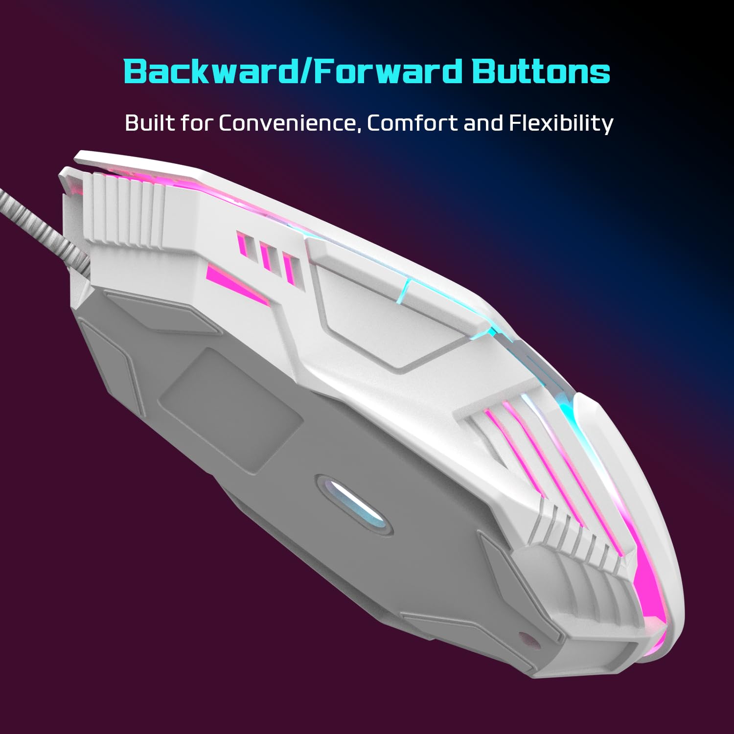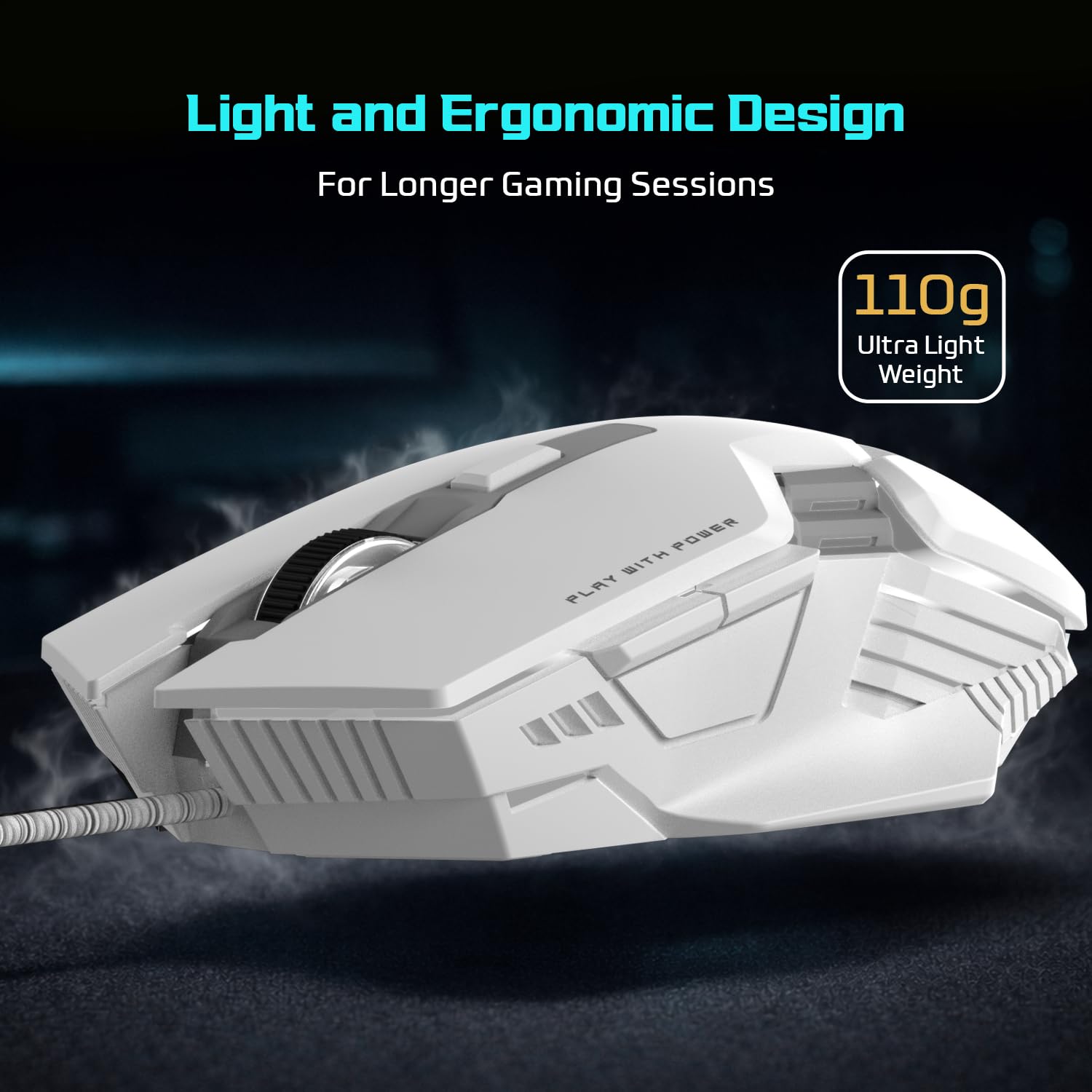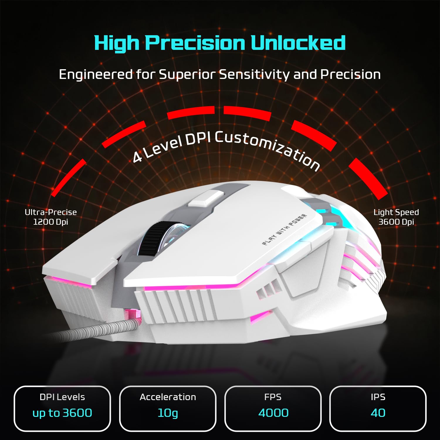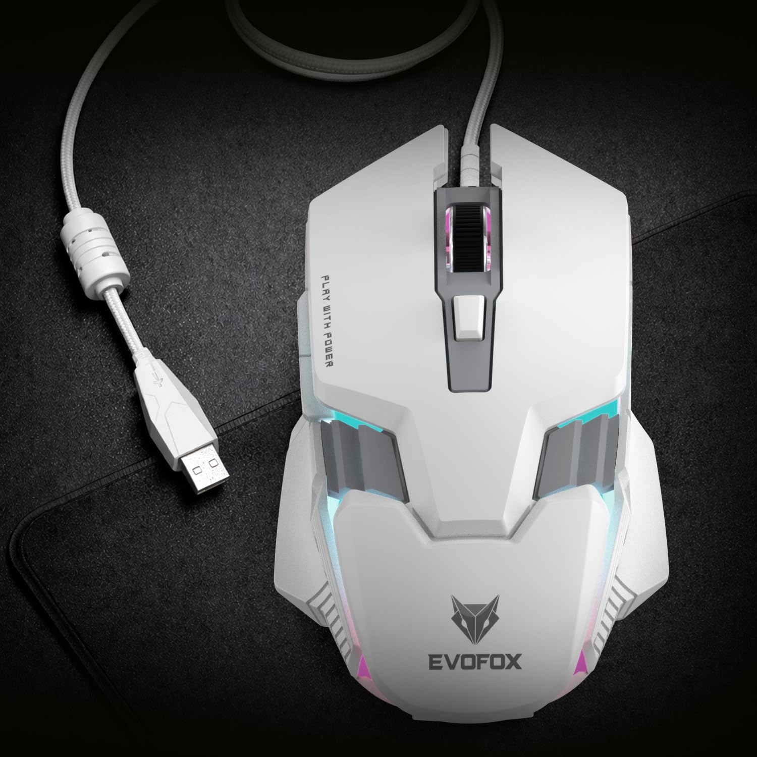 EvoFox Starter Series Spectre USB Wired Gaming Mouse with Upto 3600 DPI Gaming Sensor | 6 Buttons Design | Upto 7 Million Clicks | 7 Colours Rainbow Lighting | 1.5m Braided Cable (White)