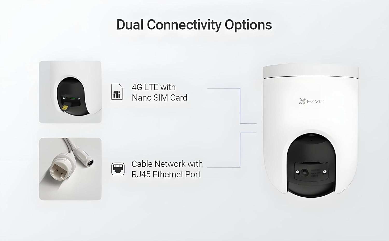 The EZVIZ H8C 4G Wireless Camera brings smart security to areas without Wi-Fi – just insert any 4G SIM card and you’re ready! With its 3MP (2K) resolution, every detail is captured clearly whether it’s day or night. Equipped with AI-powered human detection, this camera sends instant alerts only when a person is spotted – no more false alarms due to wind, animals, or passing vehicles. Thanks to color night vision, you won’t miss anything even after sunset. The powerful IR lights and spotlight help you see everything in vivid color. Communicate in real time through the EZVIZ App with 2-way audio, whether it’s a delivery agent or a suspicious visitor. Built for outdoor use, the IP65-rated weatherproof design ensures uninterrupted protection in Indian conditions – dust, rain, or heat. Its all-SIM support makes it perfect for farms, under-construction sites, shops, or any remote location. Installation is easy, and cloud/SD storage options ensure your footage is always safe. Protect what matters, without limits – choose the EZVIZ H8C 4G Camera.