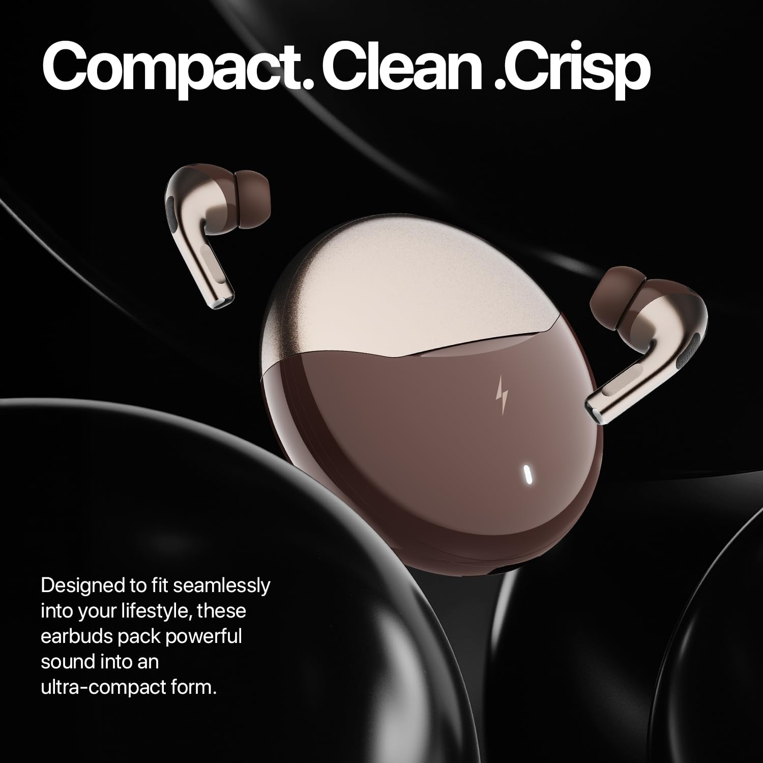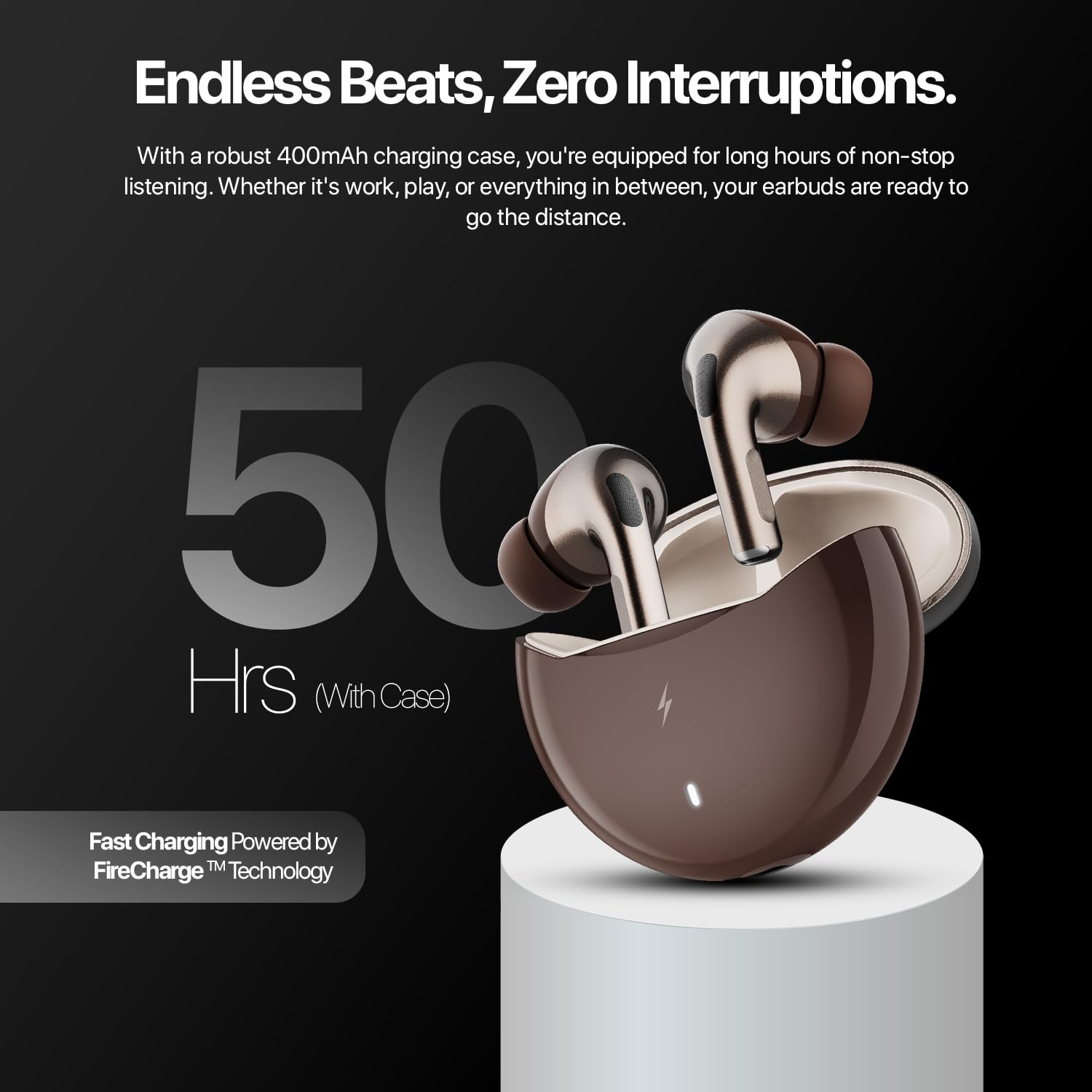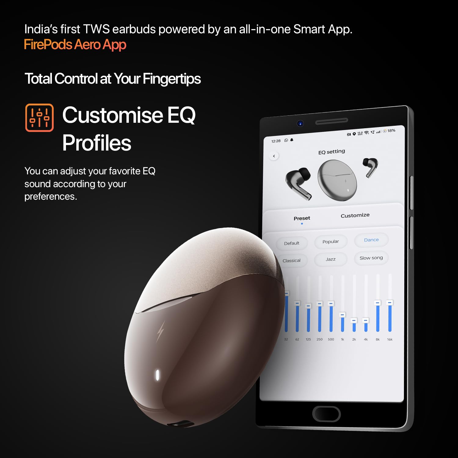 Fire‑Boltt Aero Pro TWS Earbuds Custom EQ, Wireless Bluetooth 5.4,Music & App Support,50H Playtime,Fast Charging Case, 50ms Low Latency for Gaming,Touch Controls, IPX4 Waterproof, Clear Calls – Walnut