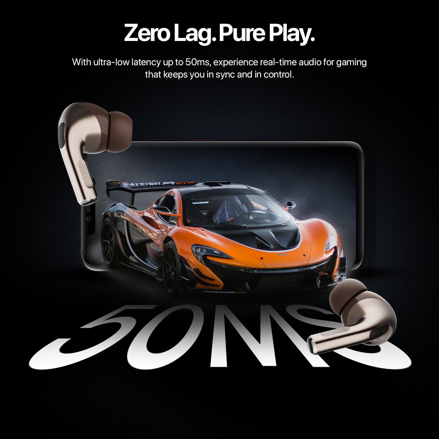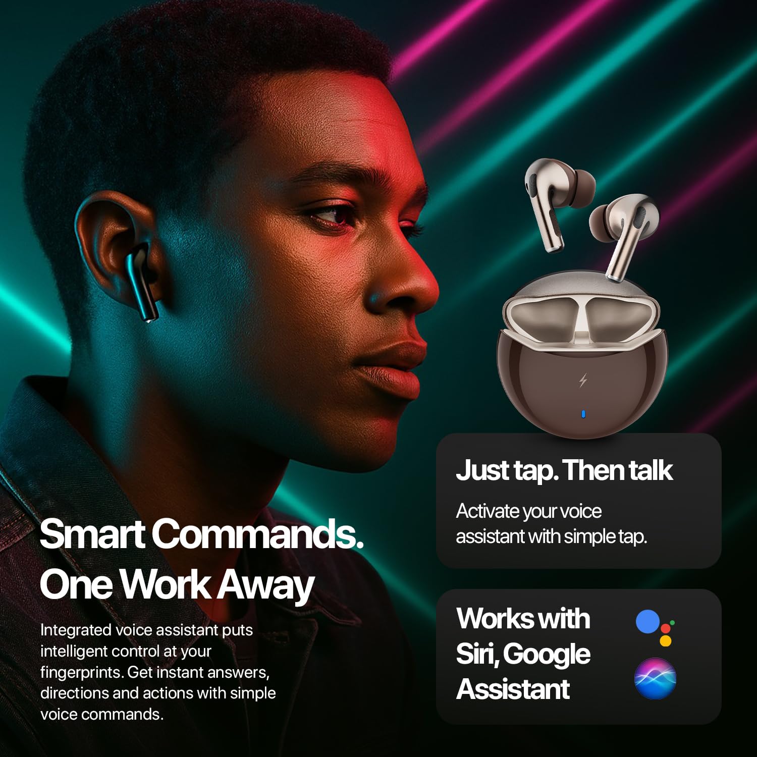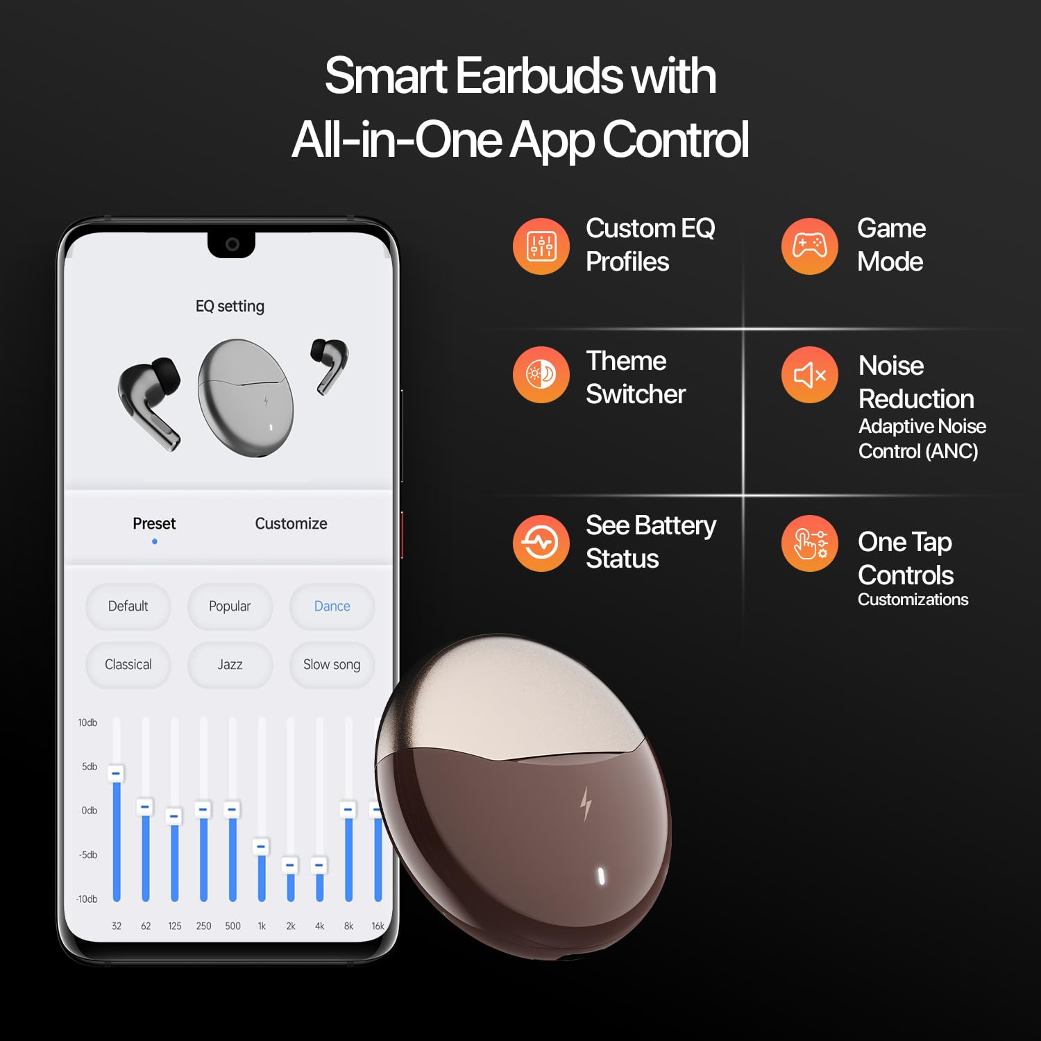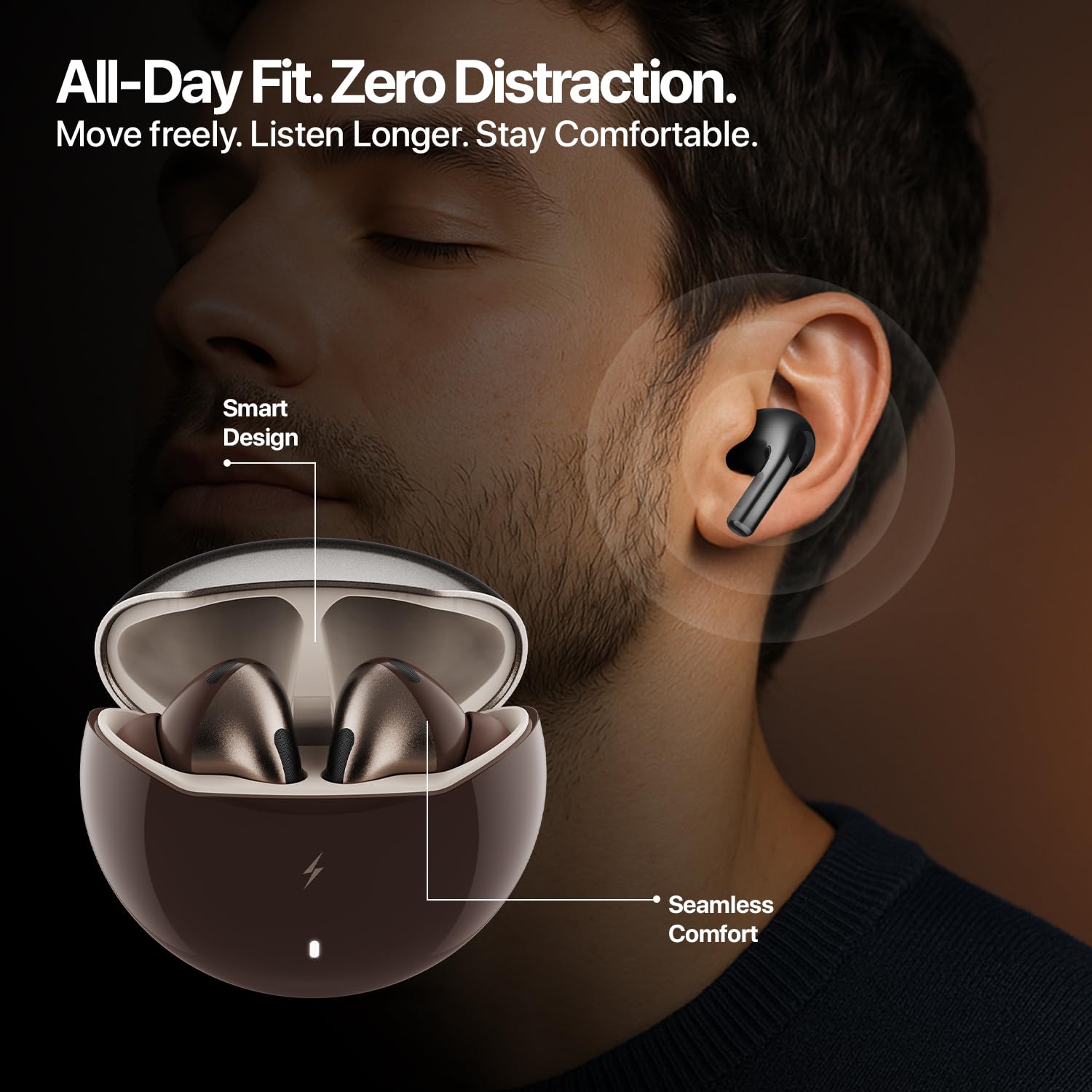 Fire‑Boltt Aero Pro TWS Earbuds Custom EQ, Wireless Bluetooth 5.4,Music & App Support,50H Playtime,Fast Charging Case, 50ms Low Latency for Gaming,Touch Controls, IPX4 Waterproof, Clear Calls – Walnut