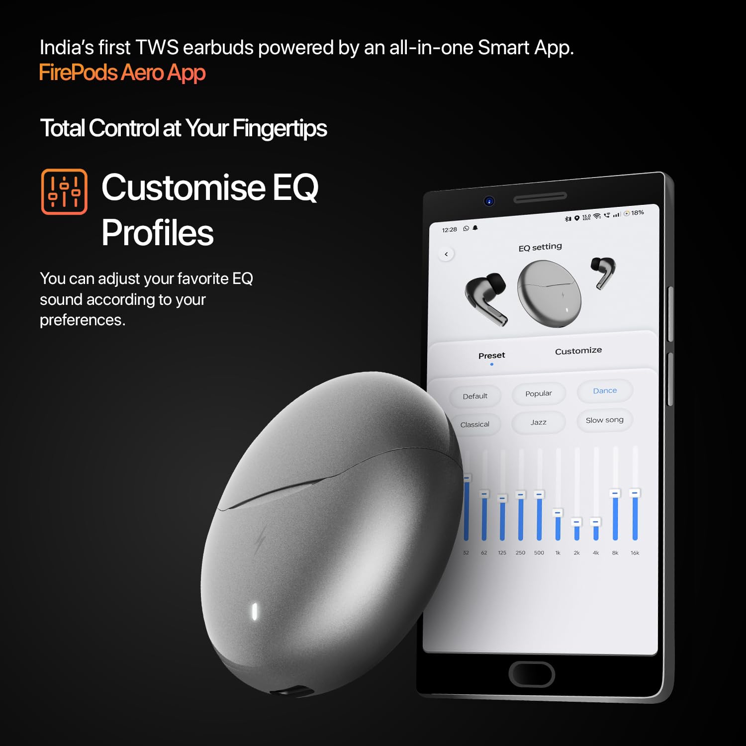 Fire-Boltt Aero Ultra TWS Earbuds Custom EQ,Wireless Bluetooth 5.4,Music & App Support, 50H Playtime,Fast Charging Case, 50ms Low Latency for Gaming,Touch Controls,IPX4 Waterproof,Clear Calls – Black