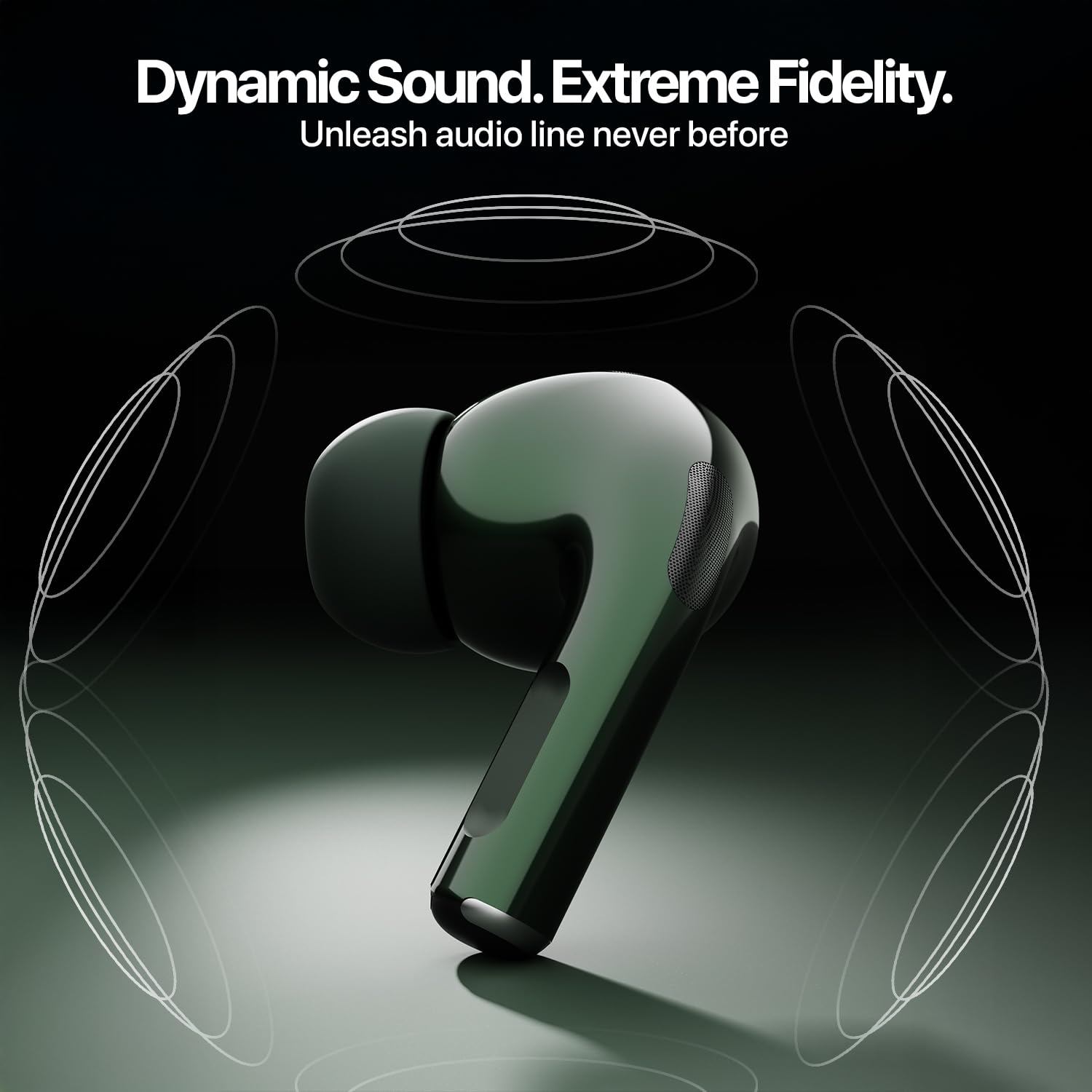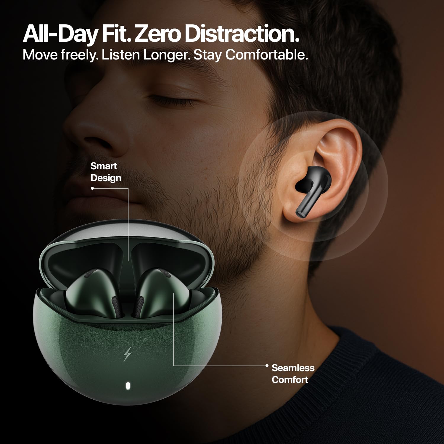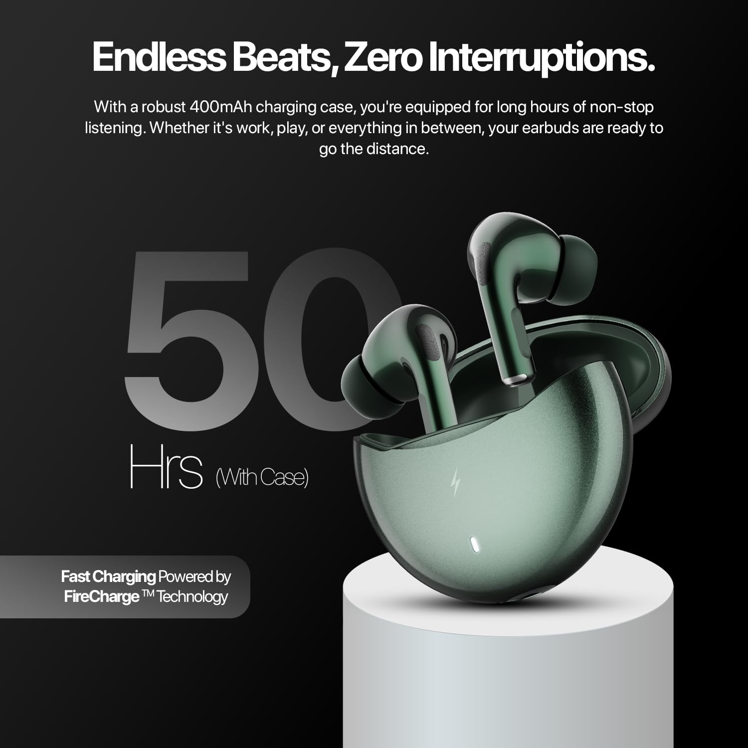 Fire-Boltt Aero Ultra TWS Earbuds Custom EQ,Wireless Bluetooth 5.4,Music & App Support, 50H Playtime,Fast Charging Case, 50ms Low Latency for Gaming,Touch Controls,IPX4 Waterproof,Clear Calls – Green