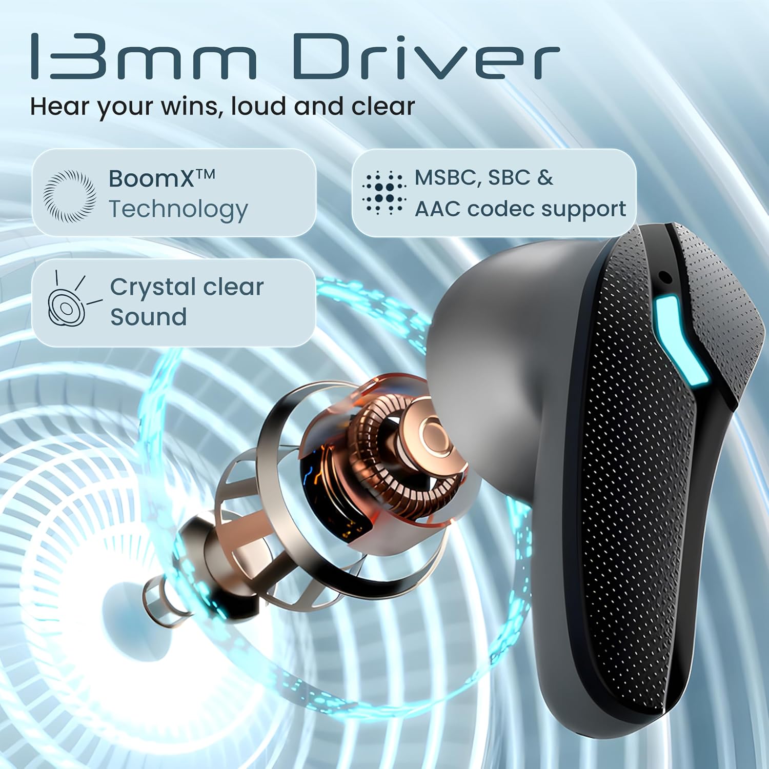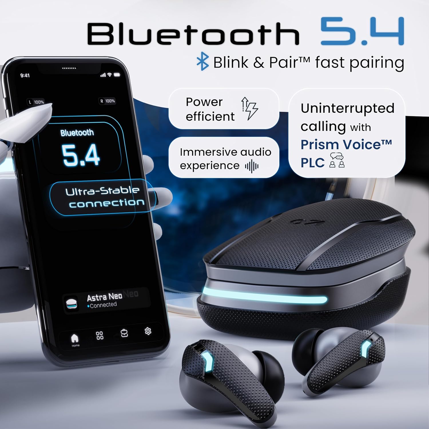GOBOULT Astra Neo Bluetooth in Ear Earbuds with 70H Playtime, 40mm Bass Driver, Zen ENC Mic, Type-C Charging, Bluetooth 5.4, Low Latency Gaming, Made in India, Wireless Earbud (Black)