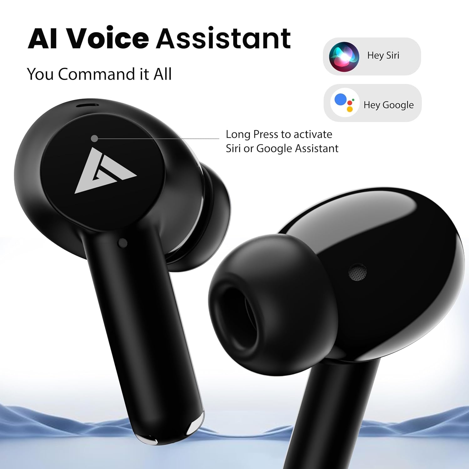 GOBOULT K40 True Wireless in Ear Earbuds with 48H Playtime, Clear Calling 4 Mics, 45ms Low Latency Gaming, 13mm Bass Drivers, Type-C Fast Charging, BTv 5.3 Ear Buds (Electric Black)