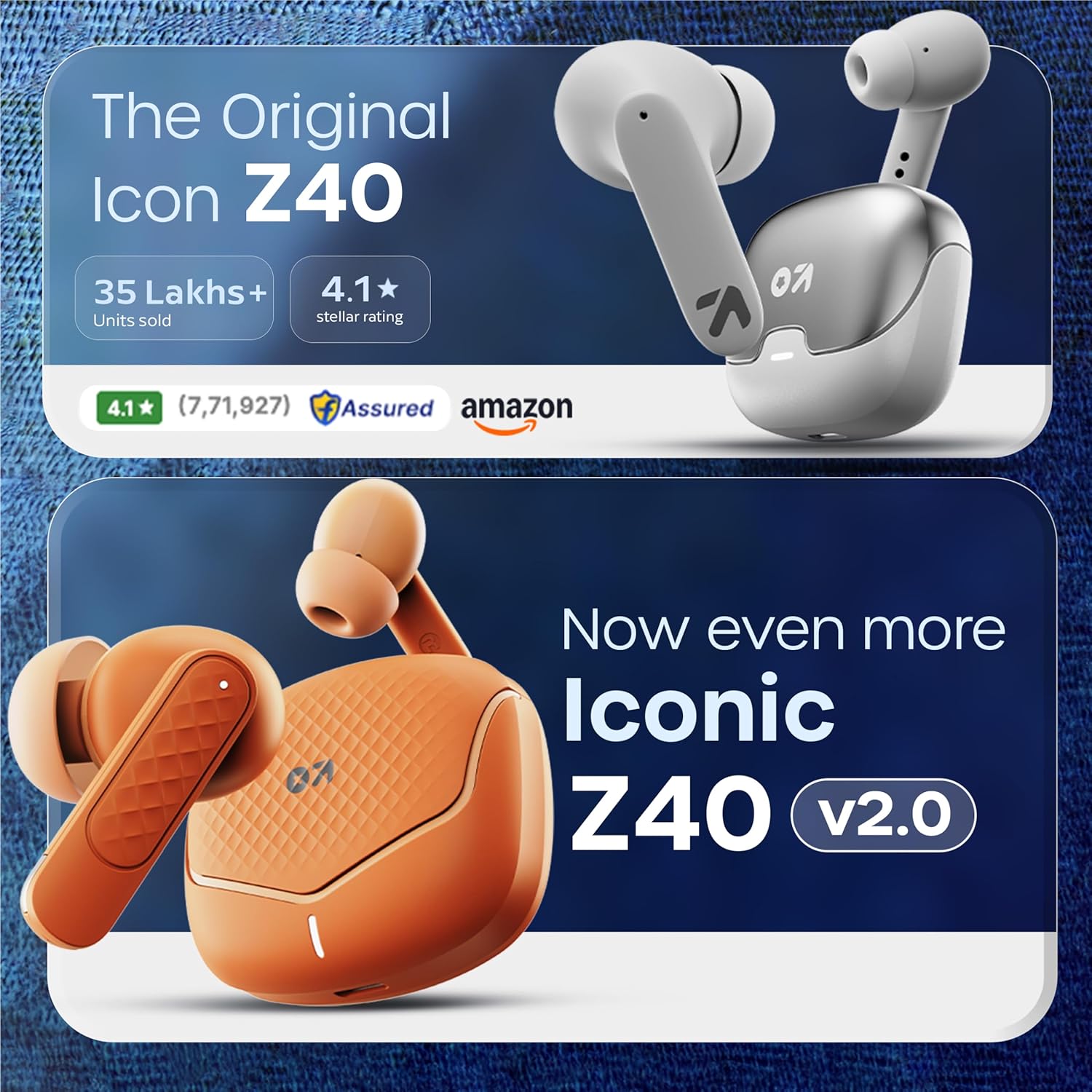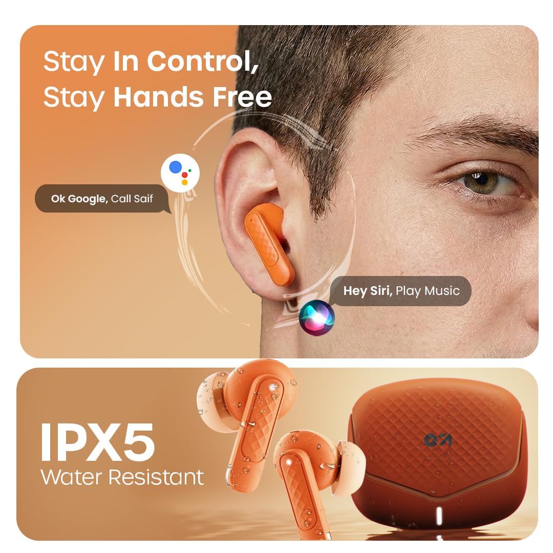 GOBOULT Newly Launched Z40 V2.0 with 70H Playtime, Quad Mic ENC, 45ms Low Latency, 13mm Bass, Legacy Continues, IPX5, Bluetooth 5.4, TWS Truly Wireless in Ear Earbuds (Solar Orange)