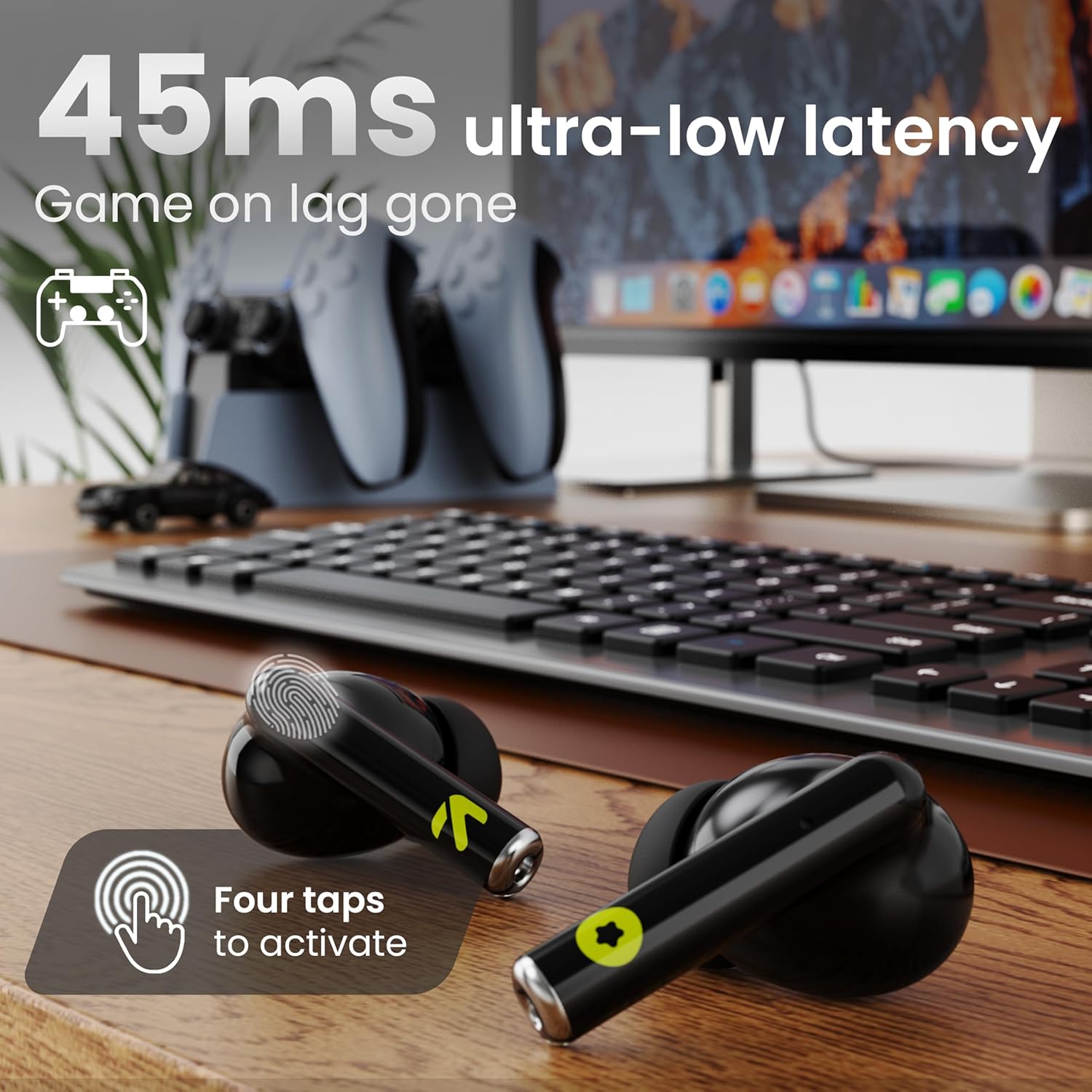 GOBOULT W20 Truly Wireless in Ear Earbuds with 35H Playtime, Zen™ ENC Mic, 45ms Low Latency, 13mm Bass Drivers, Type-C Fast Charging, Touch Controls, IPX5 Ear Buds TWS (Space Black)