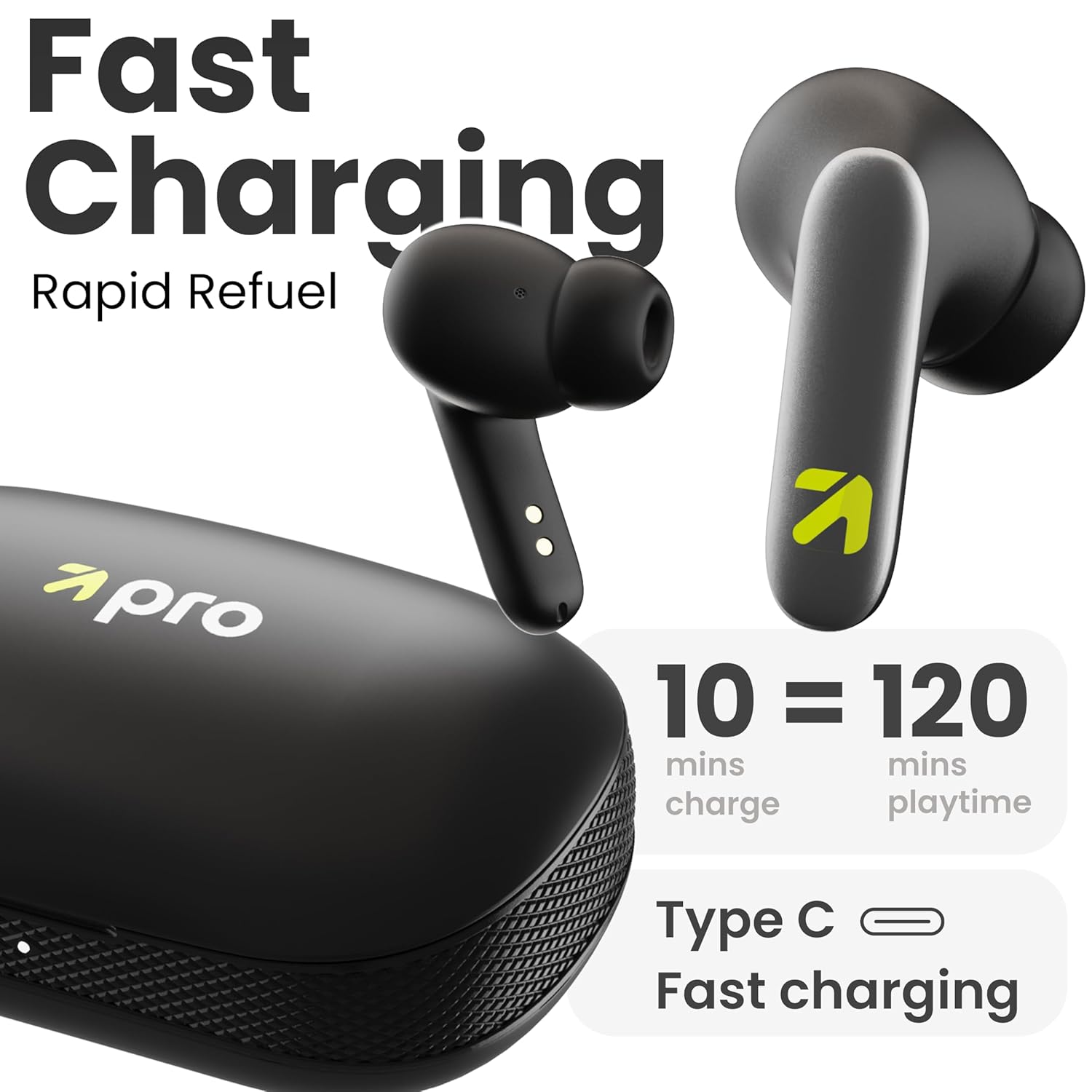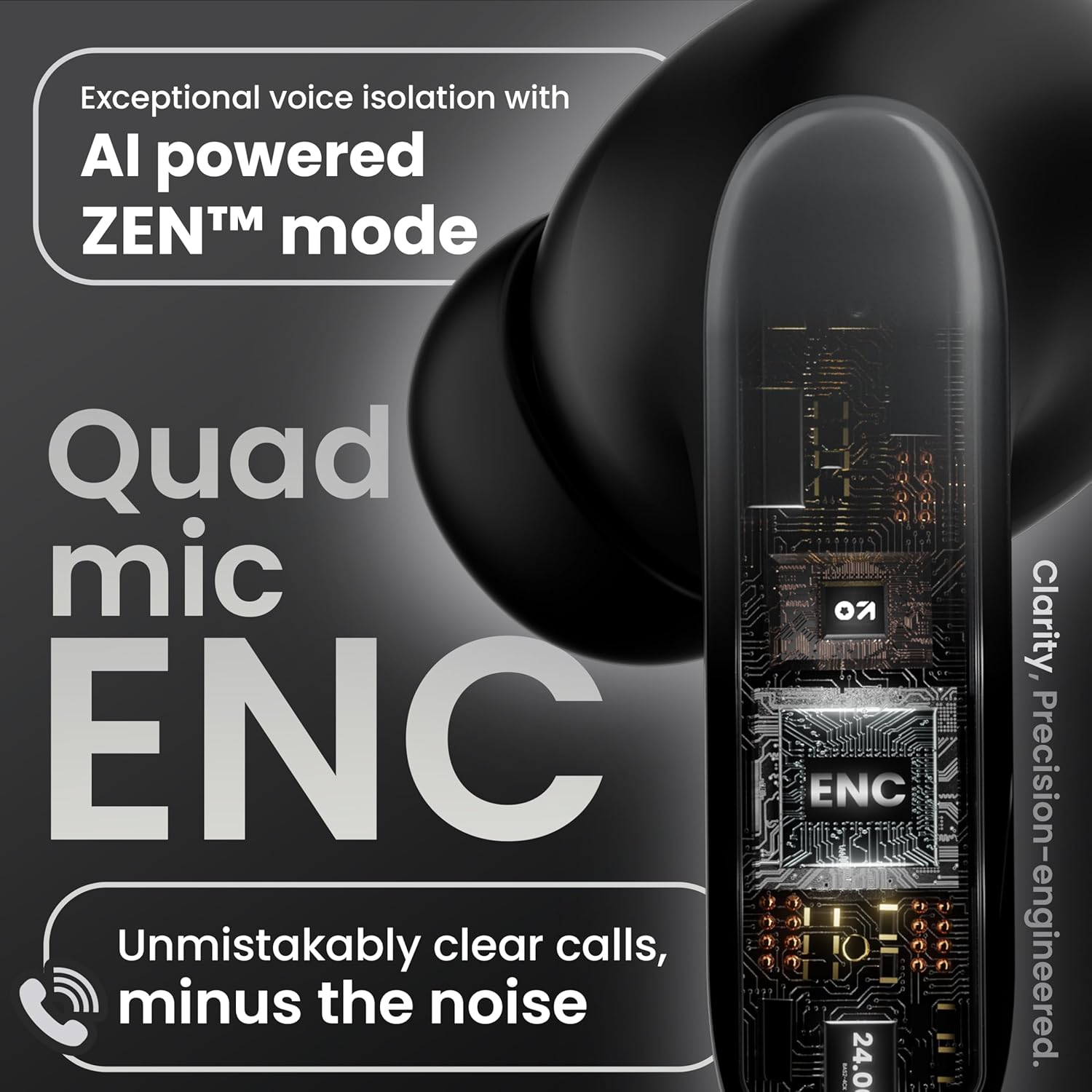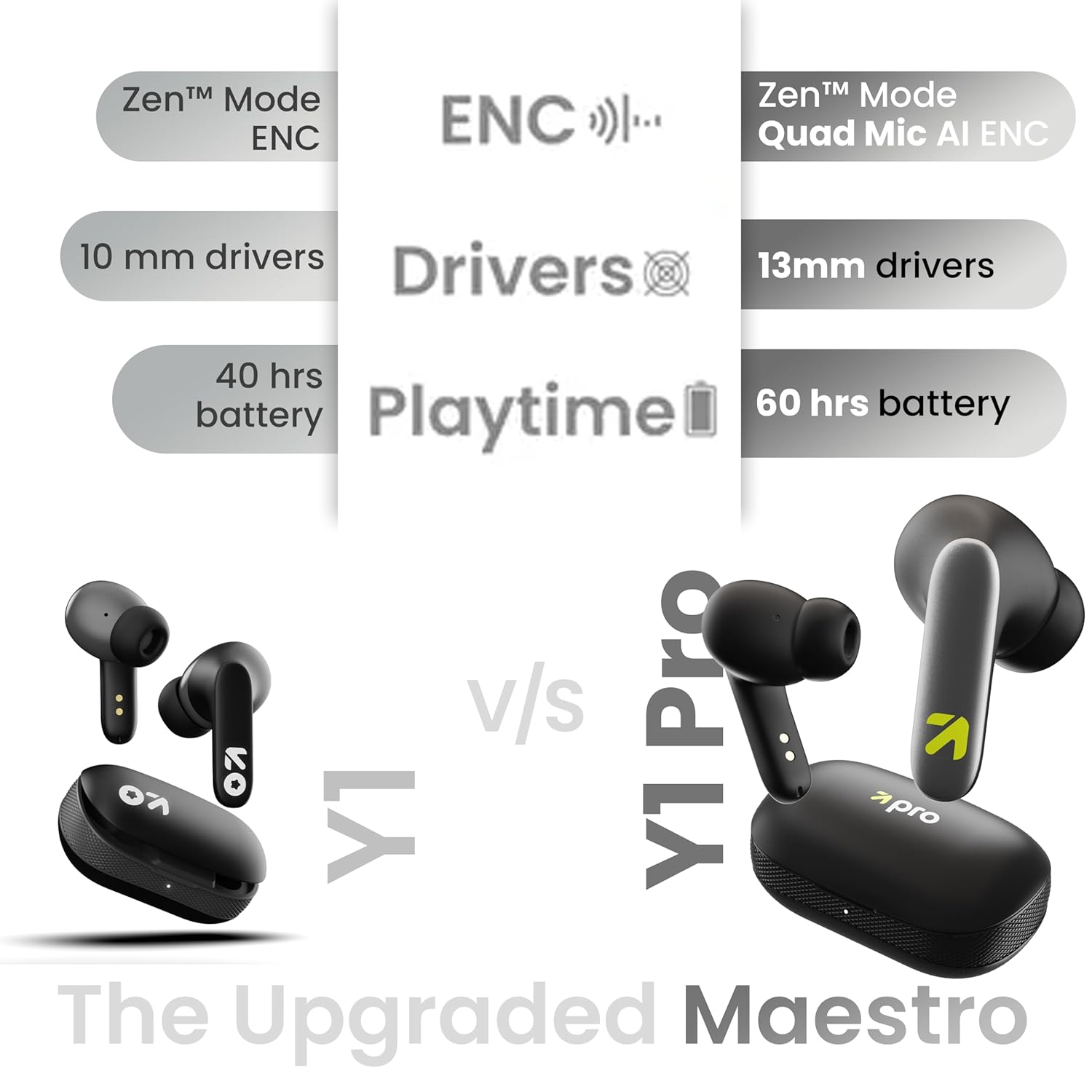 GOBOULT Y1 Pro Ear Buds Wireless with 60H Playtime, 4 Mics Calling, 45ms Latency Gaming, Made in India, 13mm Bass Driver Earbuds Buds TWS Bluetooth Wireless Earphones (Jet Black)