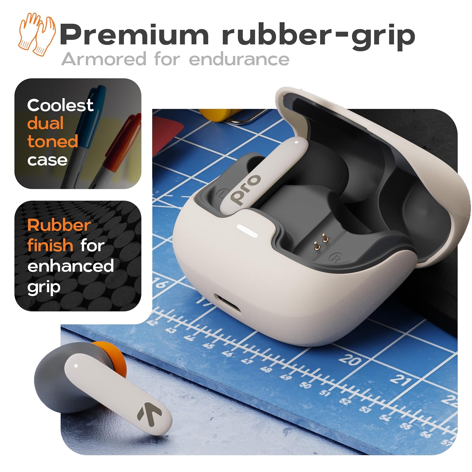 GOBOULT Z40 Pro with 100H Playtime, Zen Quad Mic ENC, 45ms Low Latency Gaming, Premium Rubber Grip Case, 13mm Bass Drivers, Bluetooth 5.3, TWS Truly Wireless in Ear Earbuds (Dawn)