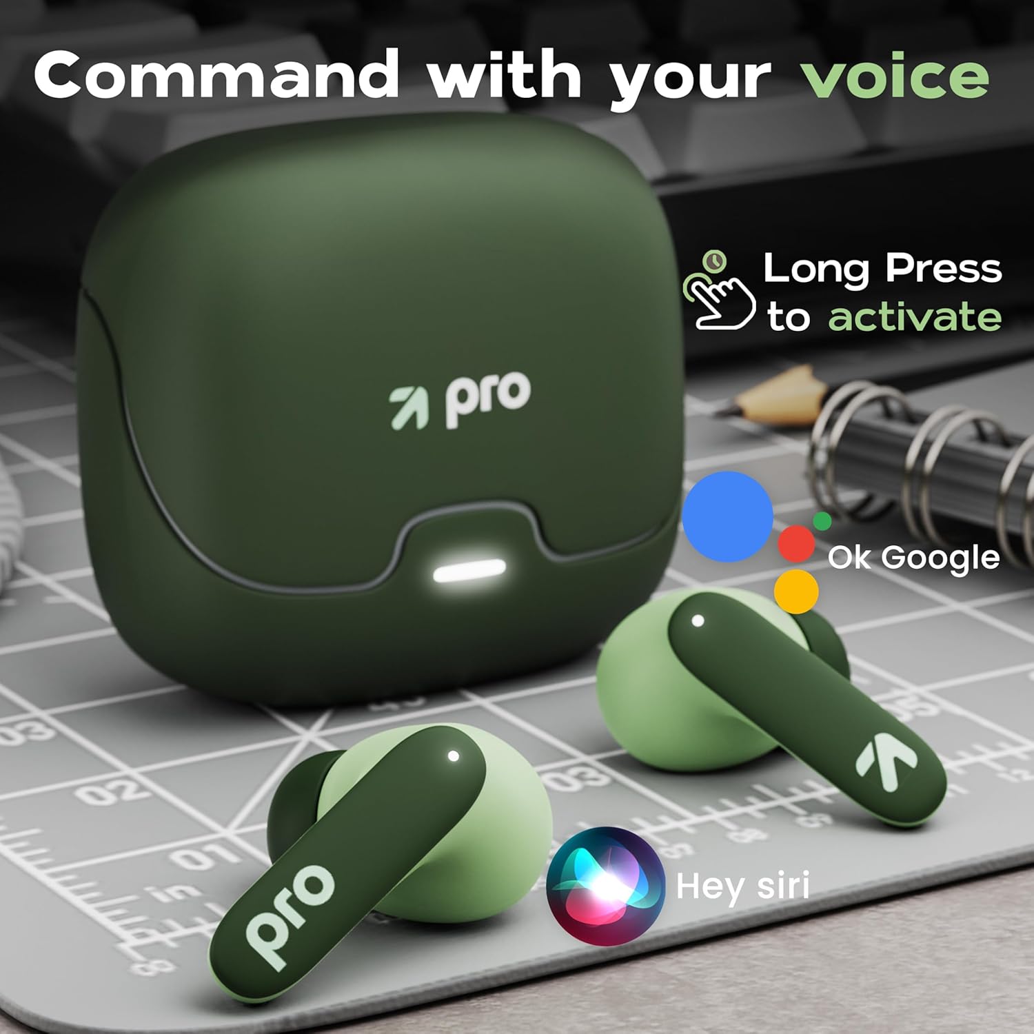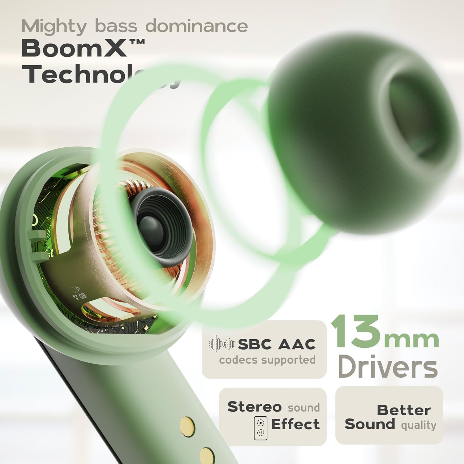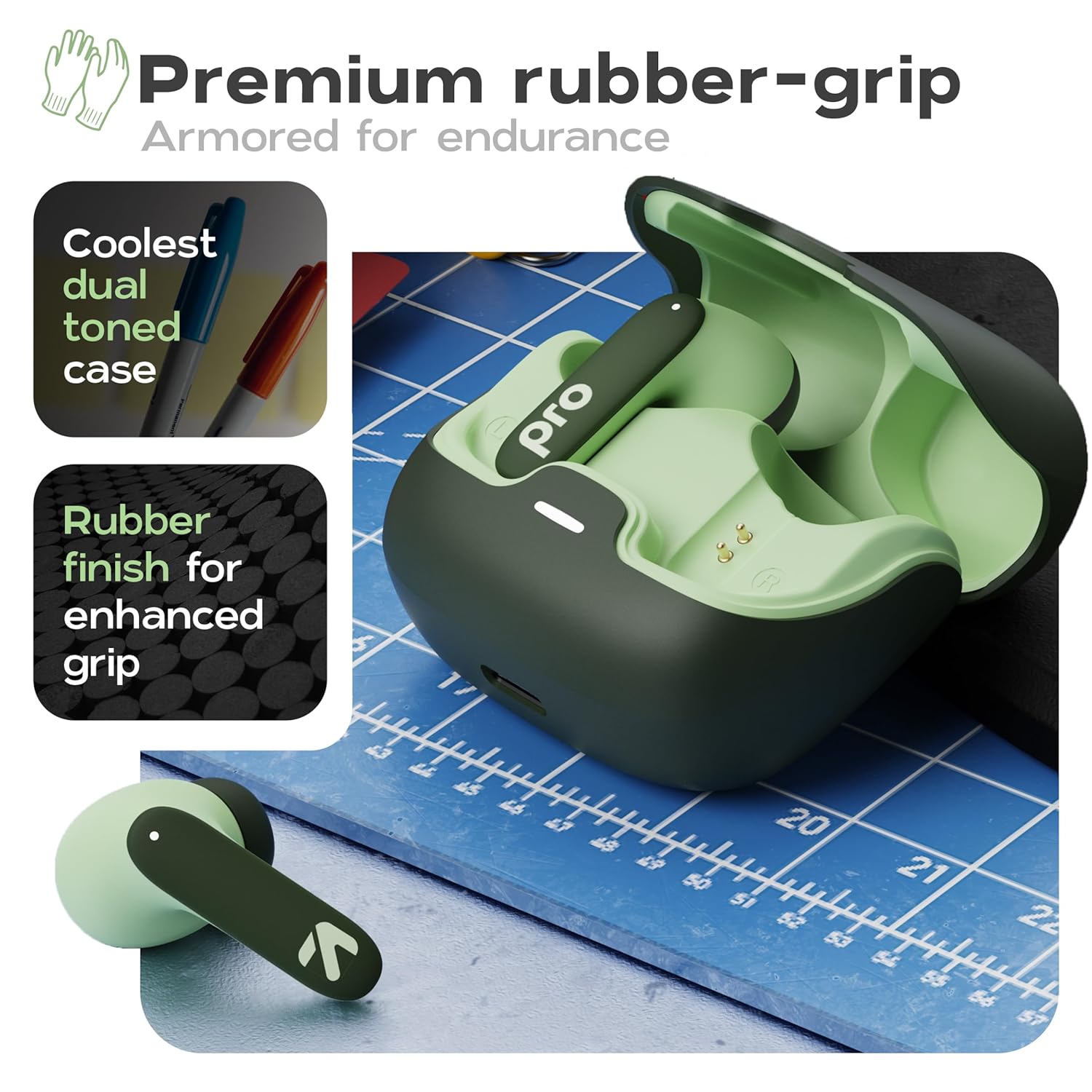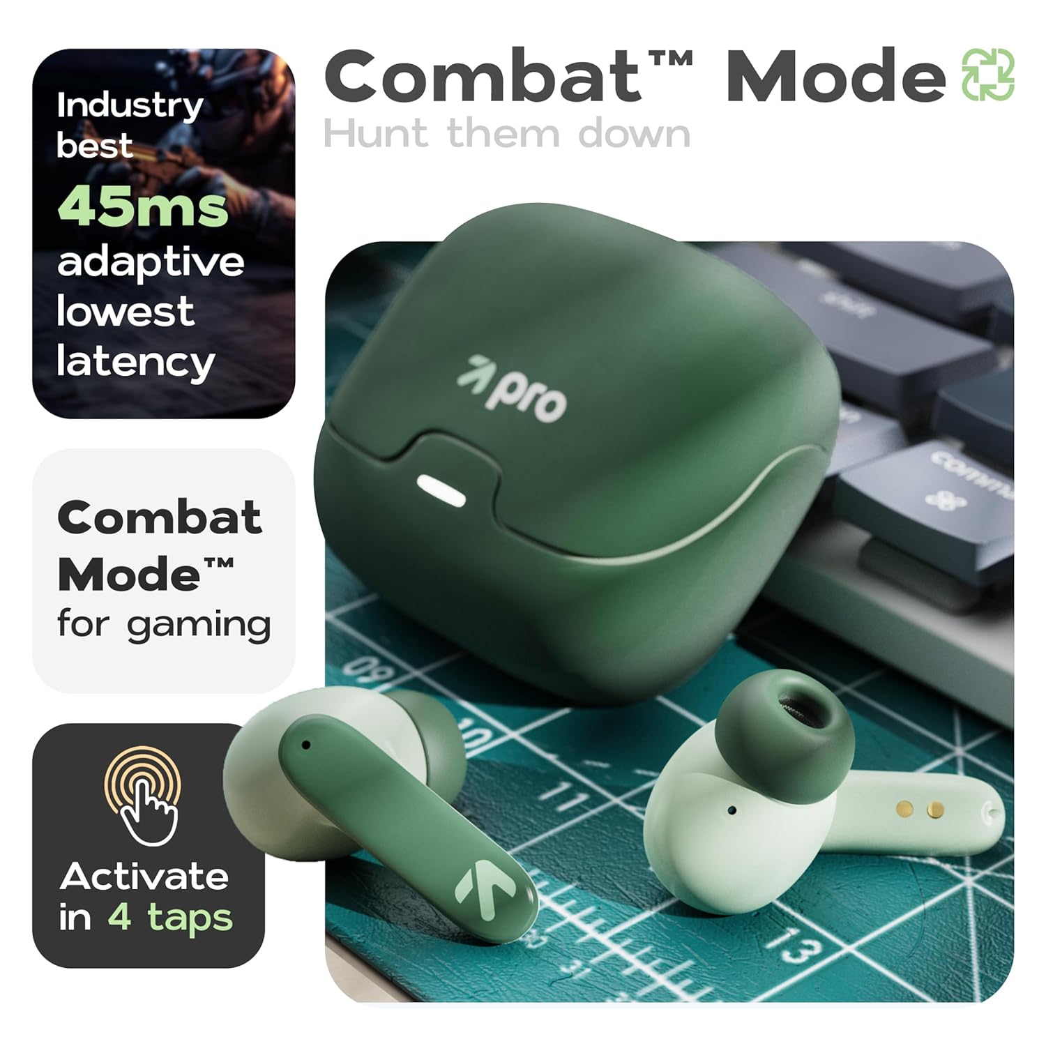 GOBOULT Z40 Pro with 100H Playtime, Zen Quad Mic ENC, 45ms Low Latency Gaming, Premium Rubber Grip Case, 13mm Bass Drivers, Bluetooth 5.3, TWS Truly Wireless in Ear Earbuds (Jungle)