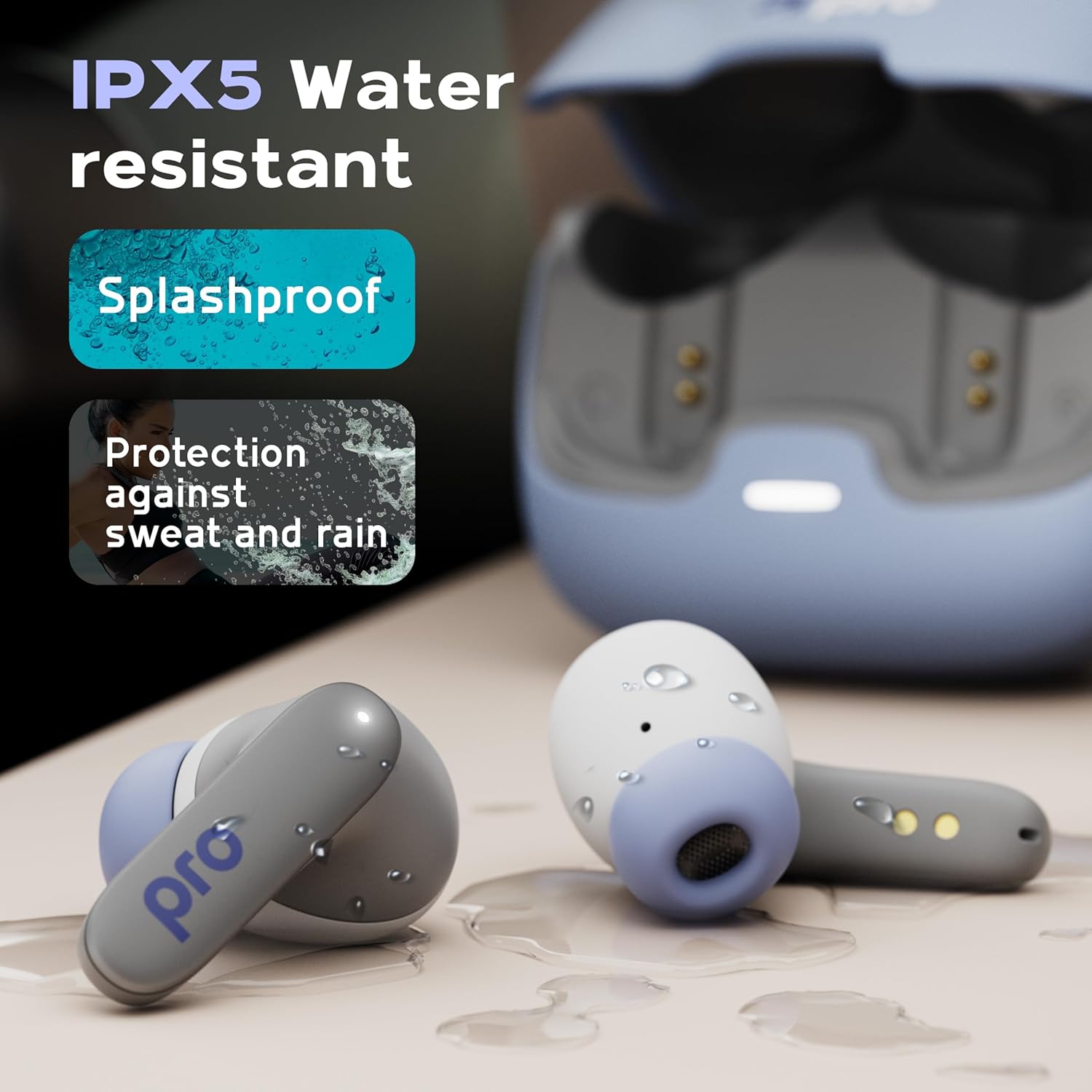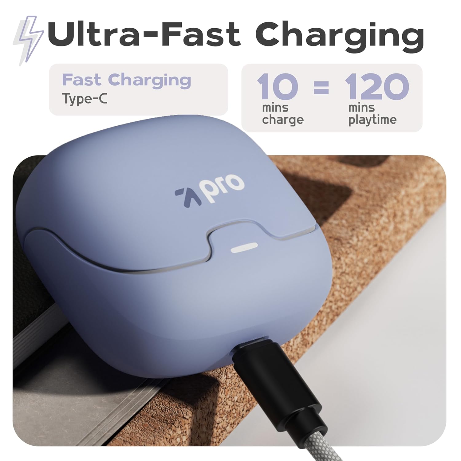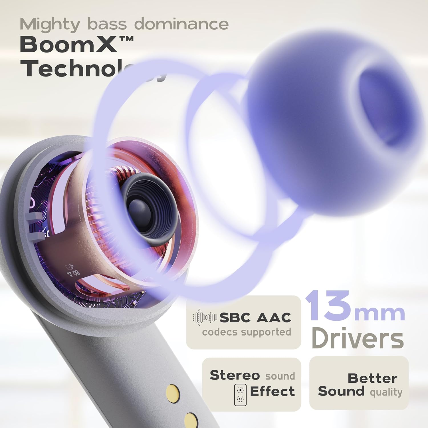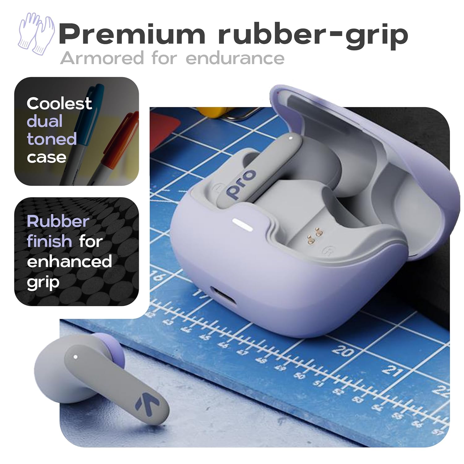 GOBOULT Z40 Pro with 100H Playtime, Zen Quad Mic ENC, 45ms Low Latency Gaming, Premium Rubber Grip Case, 13mm Bass Drivers, BT 5.3, TWS Truly Wireless in Ear Earbuds (Lavender)