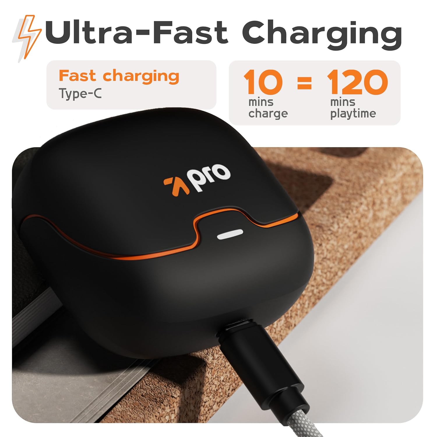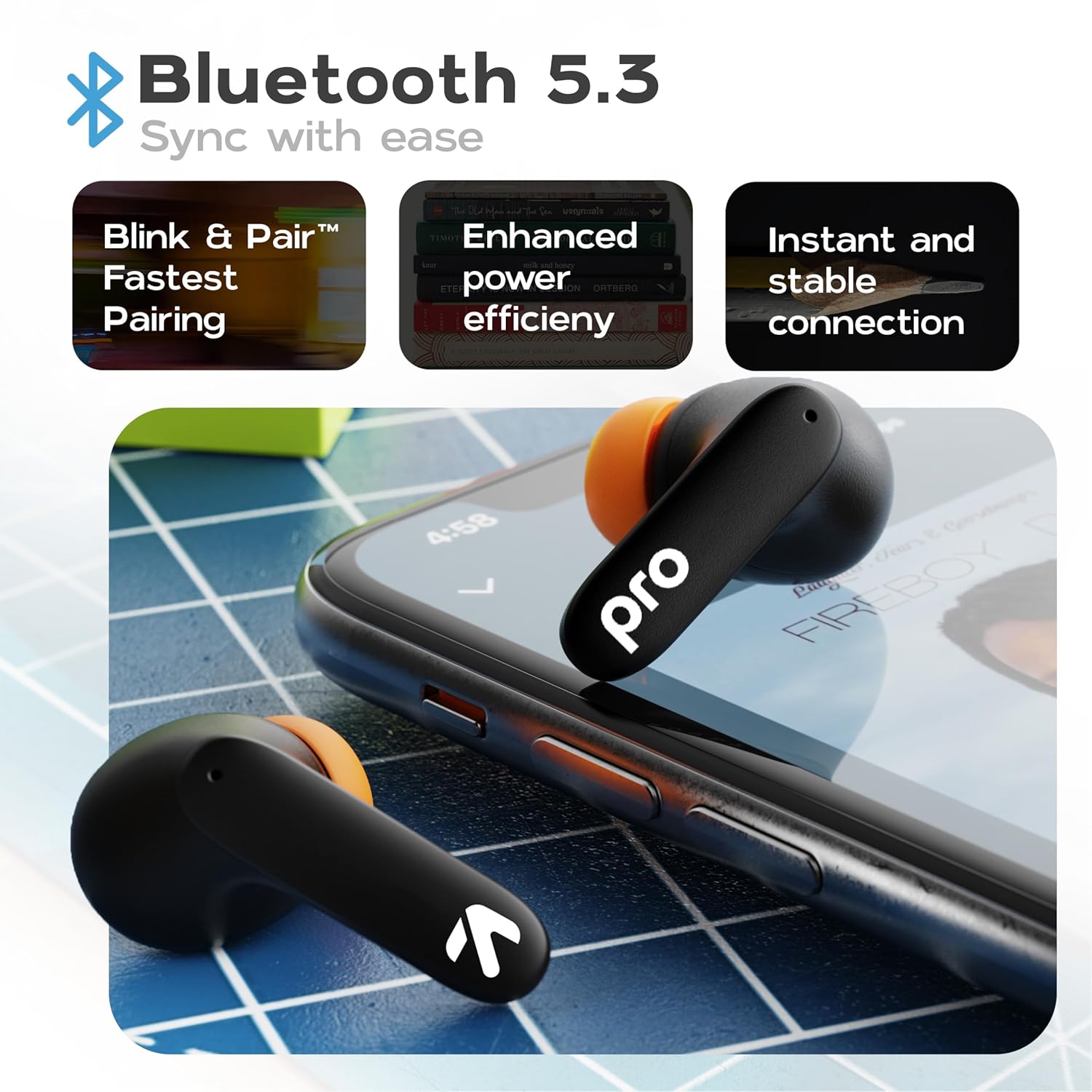 GOBOULT Z40 Pro with 100H Playtime, Zen Quad Mic ENC, 45ms Low Latency Gaming, Premium Rubber Grip Case, 13mm Bass Drivers, BT 5.3, TWS Truly Wireless in Ear Earbuds (Midnight)