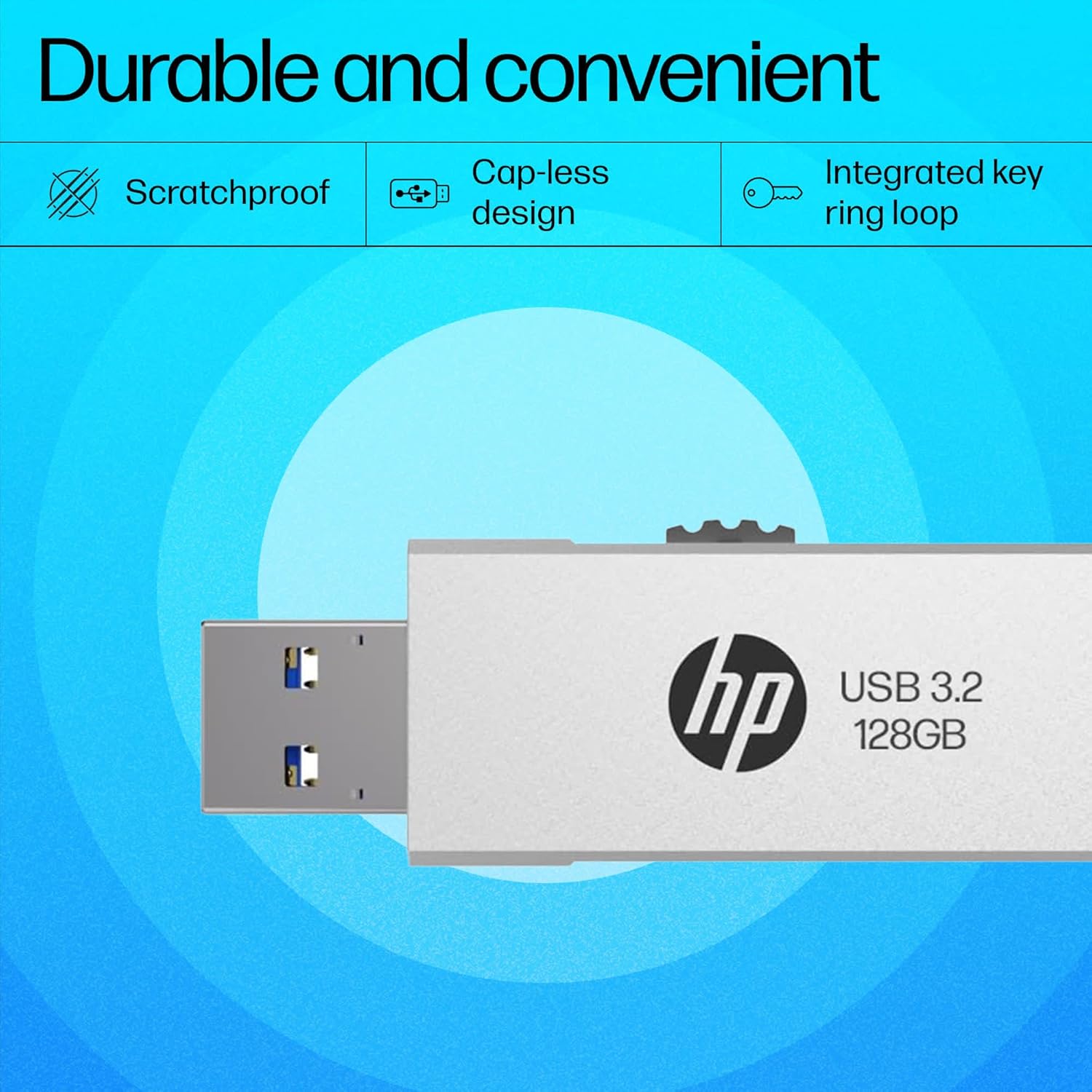 HP 818w 128GB USB 3.2 Flash Drive Silver Metal